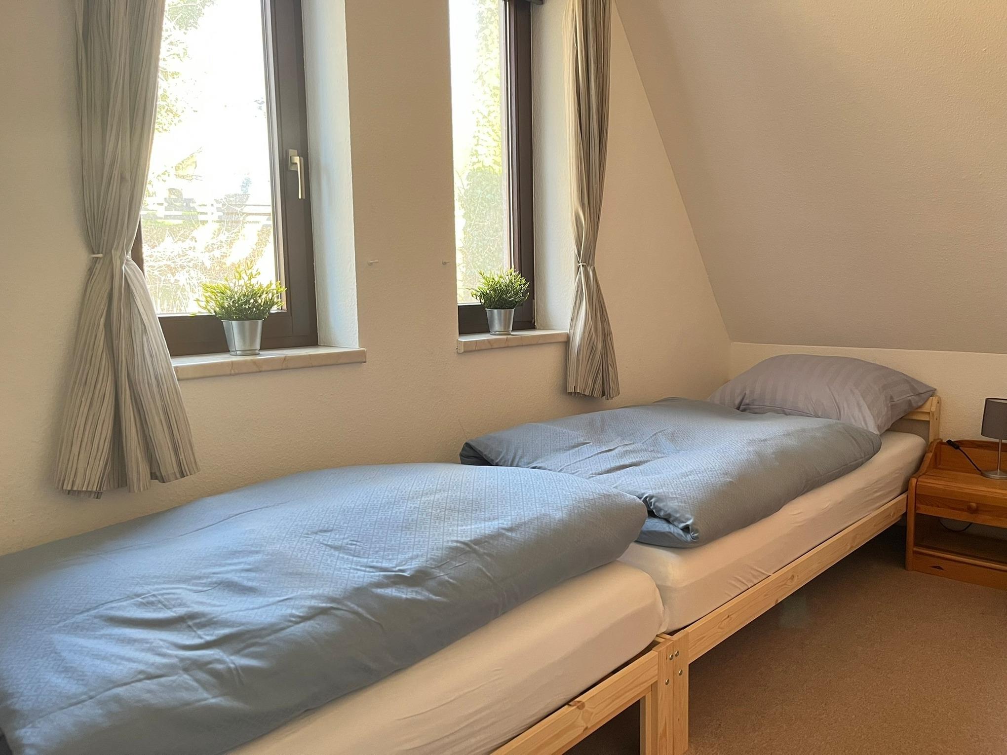 Im Erdgeschoß befindet sich der Wohnraum mit Küchenzeile, Du/WC. Die beiden separaten Schlafzimmer - 1 x Doppelbett, 1 x 2 Einzelbetten befinden sich im Obergeschoß.