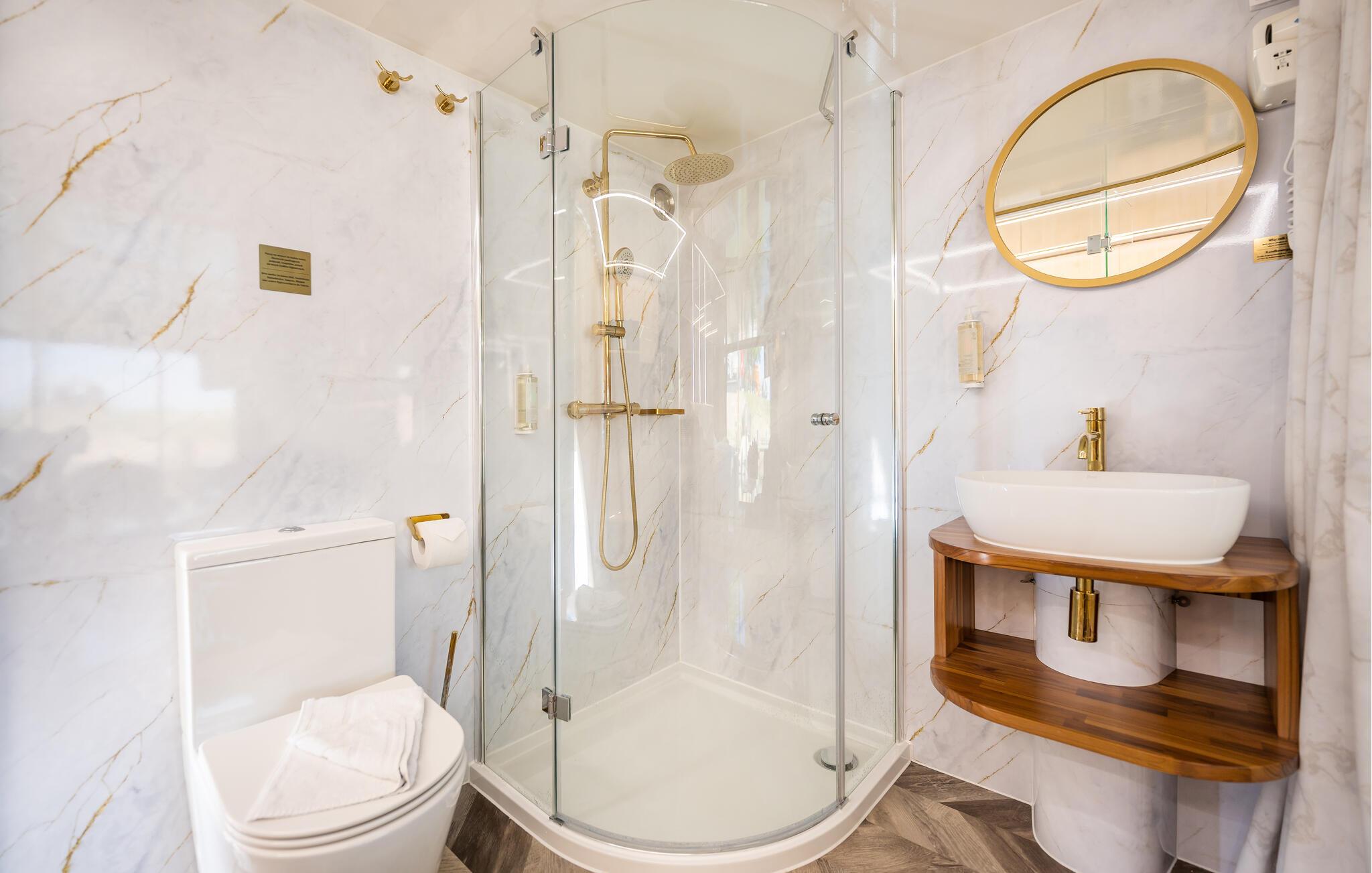 - WC mit warmem und kaltem Wasser, Dusche