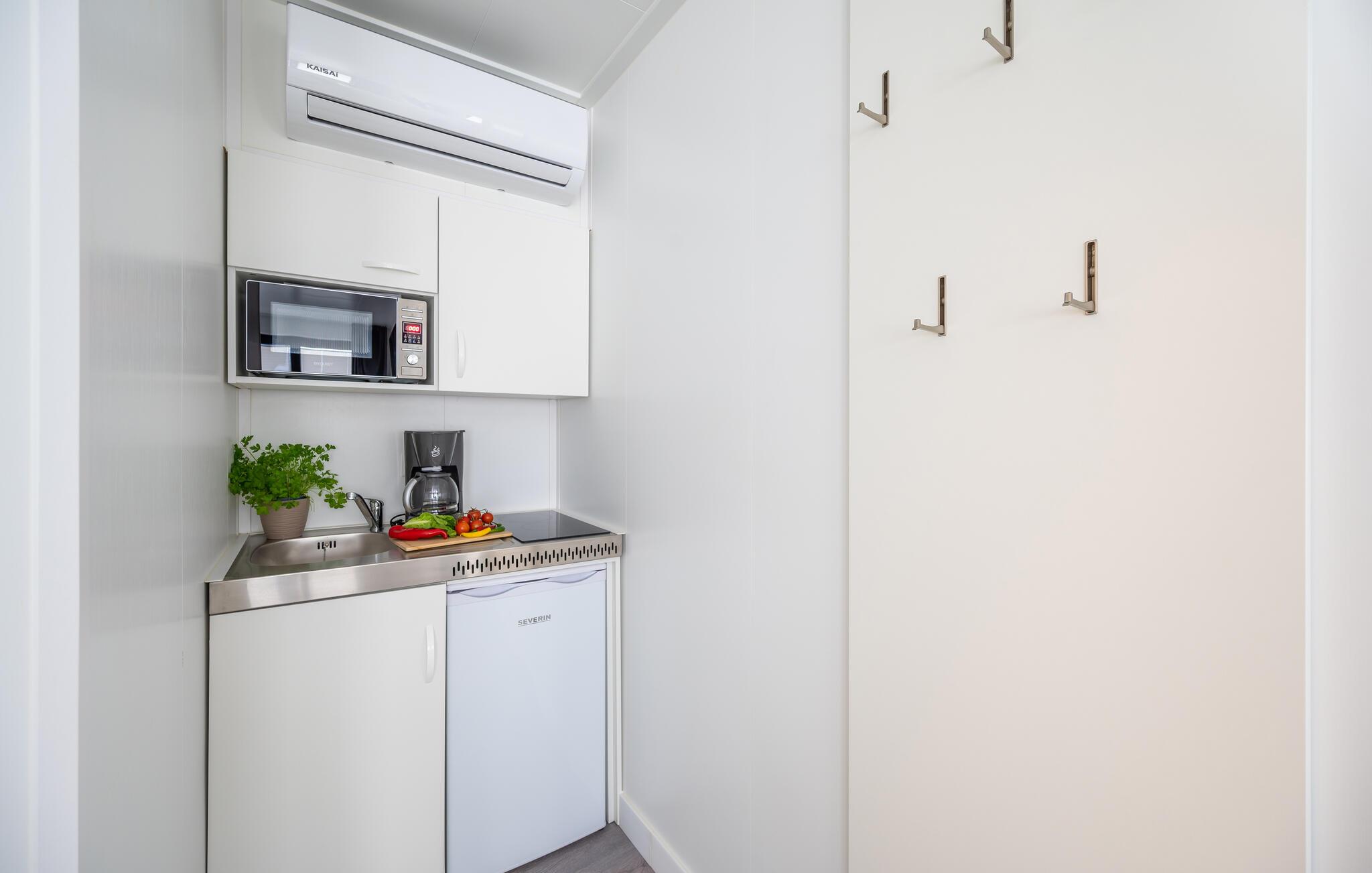 Direkt ans Naturschutzgebiet angrenzend, mit Wasserblick auf die neu entstehenden Liegeplätze in der Marina gelegen, bietet das Objekt eine Top-Basis für Inselausflüge. Das Studio Waterfront verfügt über ein Schlafzimmer mit Doppelbett und eine kleine Küchenzeile. Die Küche verfügt über einen Kühlschrank, eine Kochplatte mit zwei Kochfeldern, Kaffeemaschine, Wasserkocher, Toaster und eine Mikrowelle. Das vorhandene Bad ist mit einer Dusche, Waschbecken und WC ausgestattet. Eine Klimaanlage mit Kühl- und Heizfunktion sorgt für angenehmes Klima.