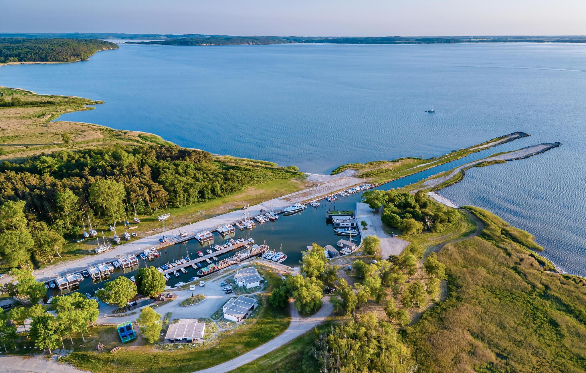 Das kleine Resort wächst steig weiter mit neuen Liegeplätzen und kleinen Suiten und Ferienhäusern in bester Wasserlage. Der Hafen liegt nur wenige Kilometer vom bekannten Inselhighlight Freilichttheater Ralswiek und einen schönen Ausflug vom Kap Arkona entfernt und bietet diverse Unterkünfte am und auf dem Wasser mit einem kleinen Hafen-Snack-Restaurant und kostenfreiem WLAN in allen Bereichen sowie kostenfreien Privatparkplätzen auf dem Marinagelände. Die größeren Orte Sassnitz und Bergen sind nach nur wenigen Minuten mit dem Auto erreichbar. Das Areal liegt ideal, um Ausflüge zum Rügendamm und der Hansestadt Stralsund zu unternehmen und verfügt über eigene kleine Strandbereiche und Wasserzugänge. Das vorhandene kleine Hafenbistro bietet einen herrlichen Blick auf Hafen und den Jasmunder Bodden und bietet eine Sonnenterrasse. Die Gegend eignet sich ideal als Ausgangspunkt für Inselerkundungen und zum Radfahren. Diverse Aktivitäten auf dem Wasser drängen sich geradezu auf. Traumhafte lange feine Sandstrände auf der Schaabe liegen nur einen kurzen Ausflug auf dem Fahrradweg entfernt. Planen Sie auch einen Ausflug nach Stralsund, dessen Hauptbahnhof und Hafen Sie gut erreichen.