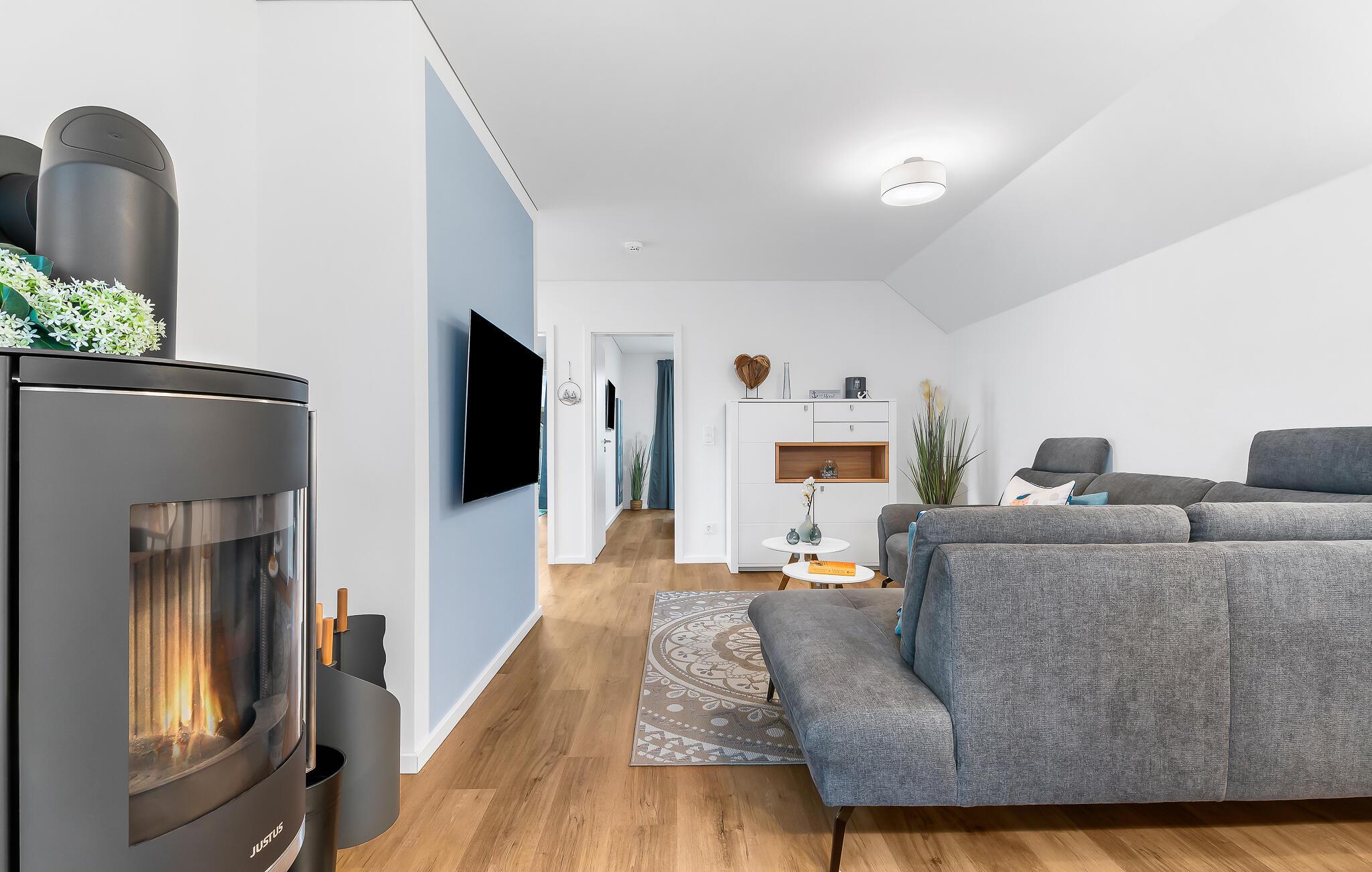 Moderne Ferienwohnung in Olpenitz mit Kamin und Infrarotsauna, nahe Ostsee und Strand, ideal für Familien und Freunde.