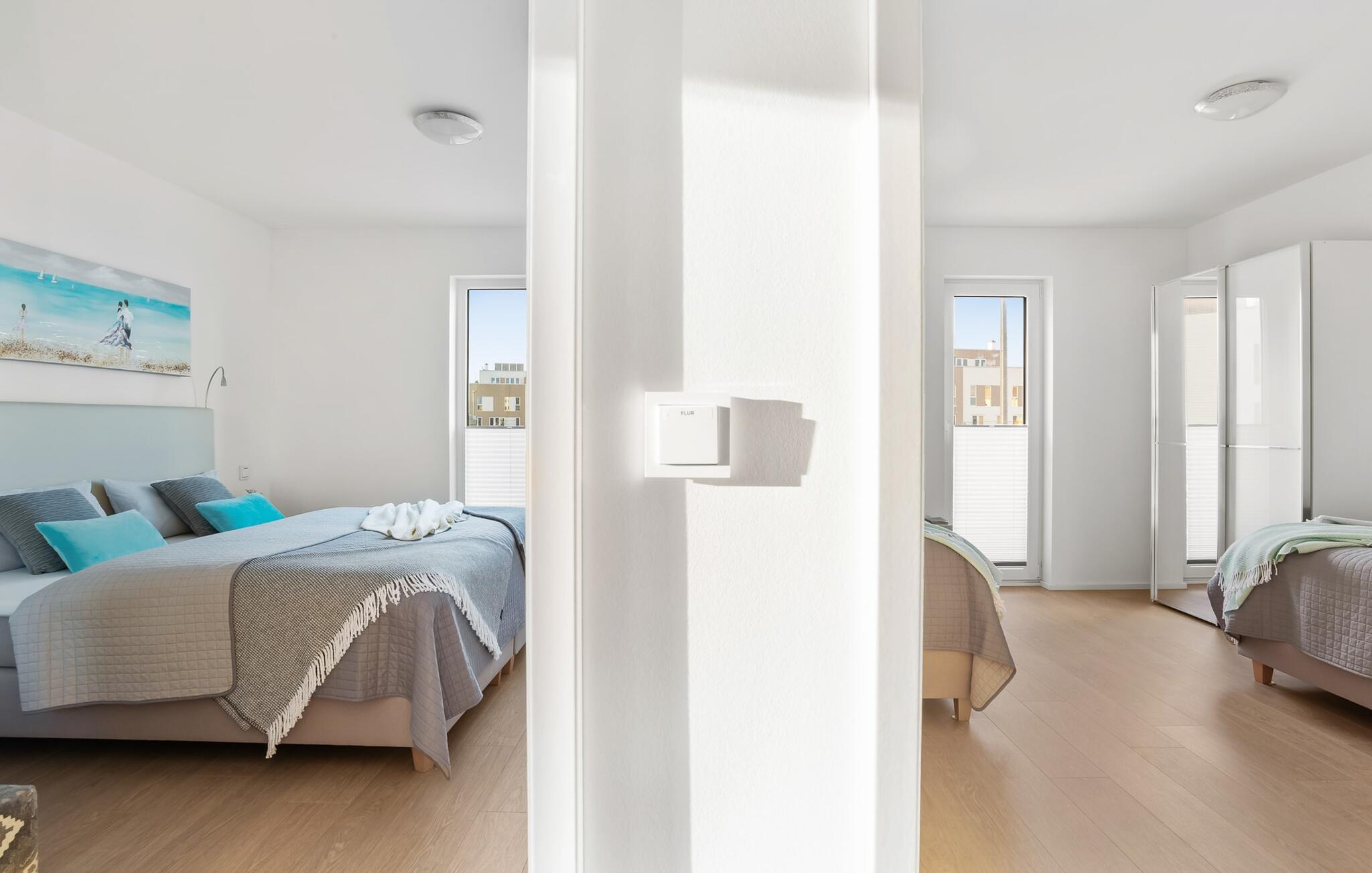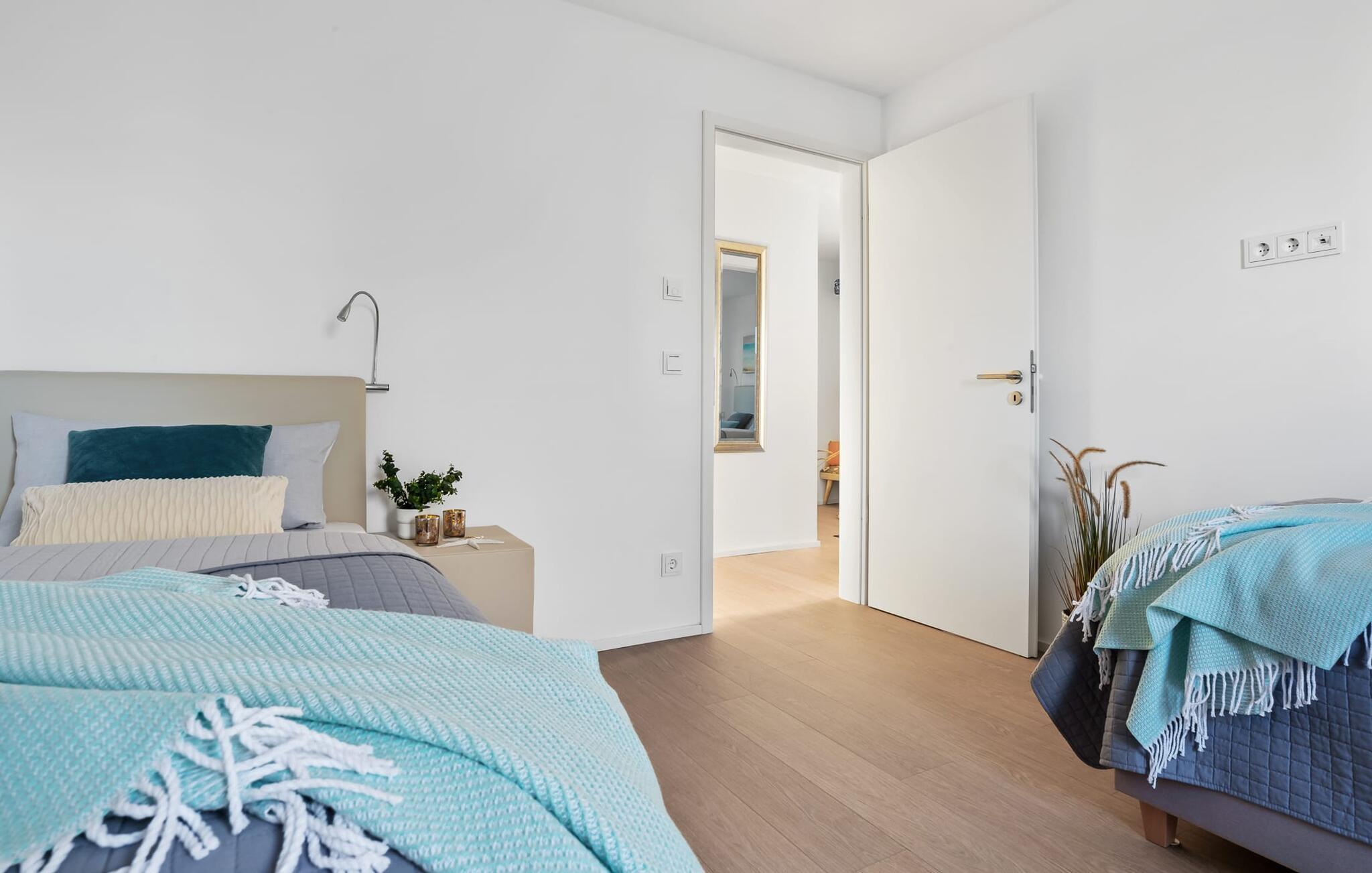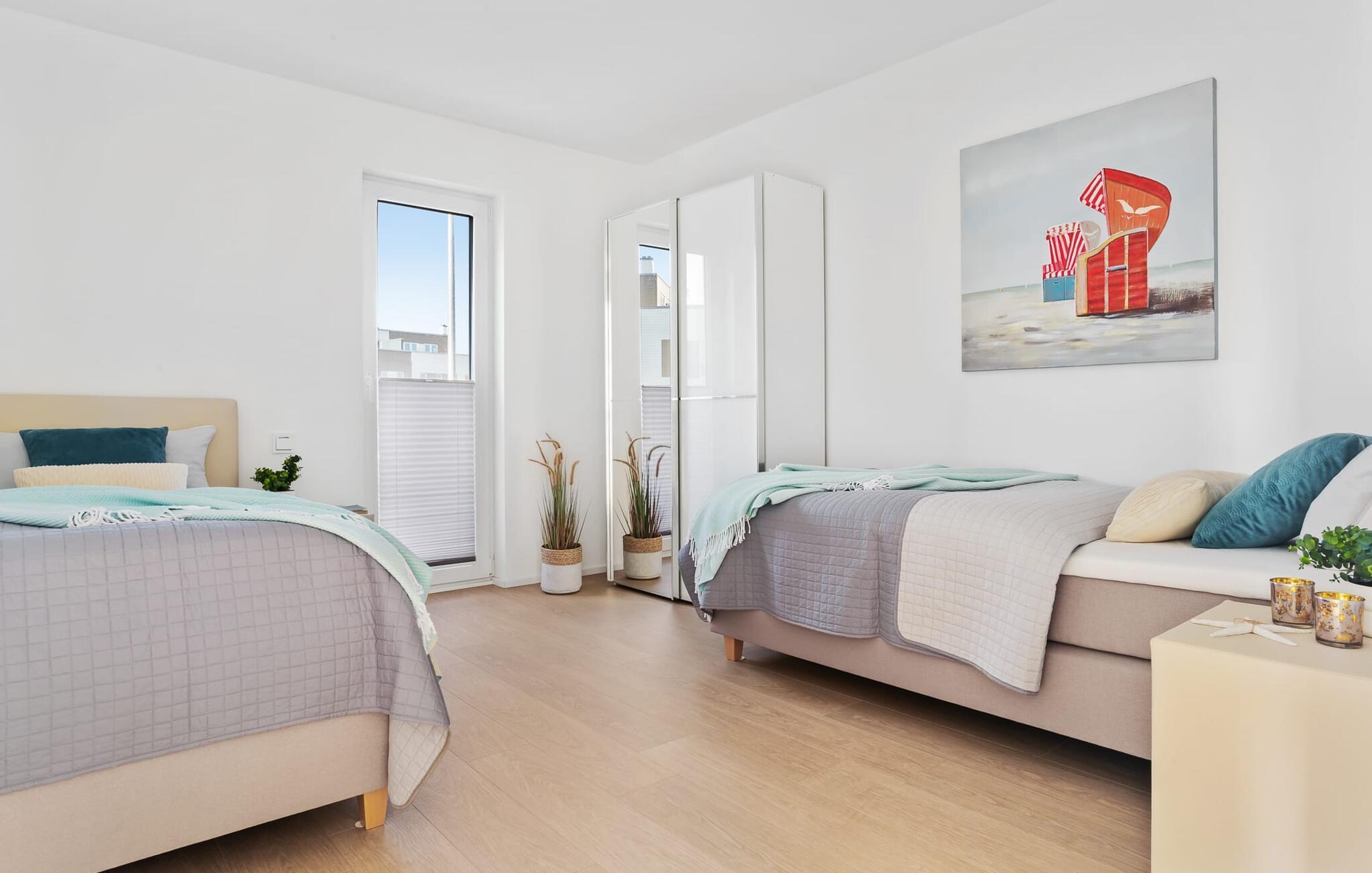 Für die nächtliche Erholung stehen zwei Schlafzimmer bereit. Das erste Schlafzimmer verwöhnt euch mit einem gemütlichen Boxspringbett, während das zweite Schlafzimmer mit zwei komfortablen Boxspring-Einzelbetten euch zum Träumen einlädt.