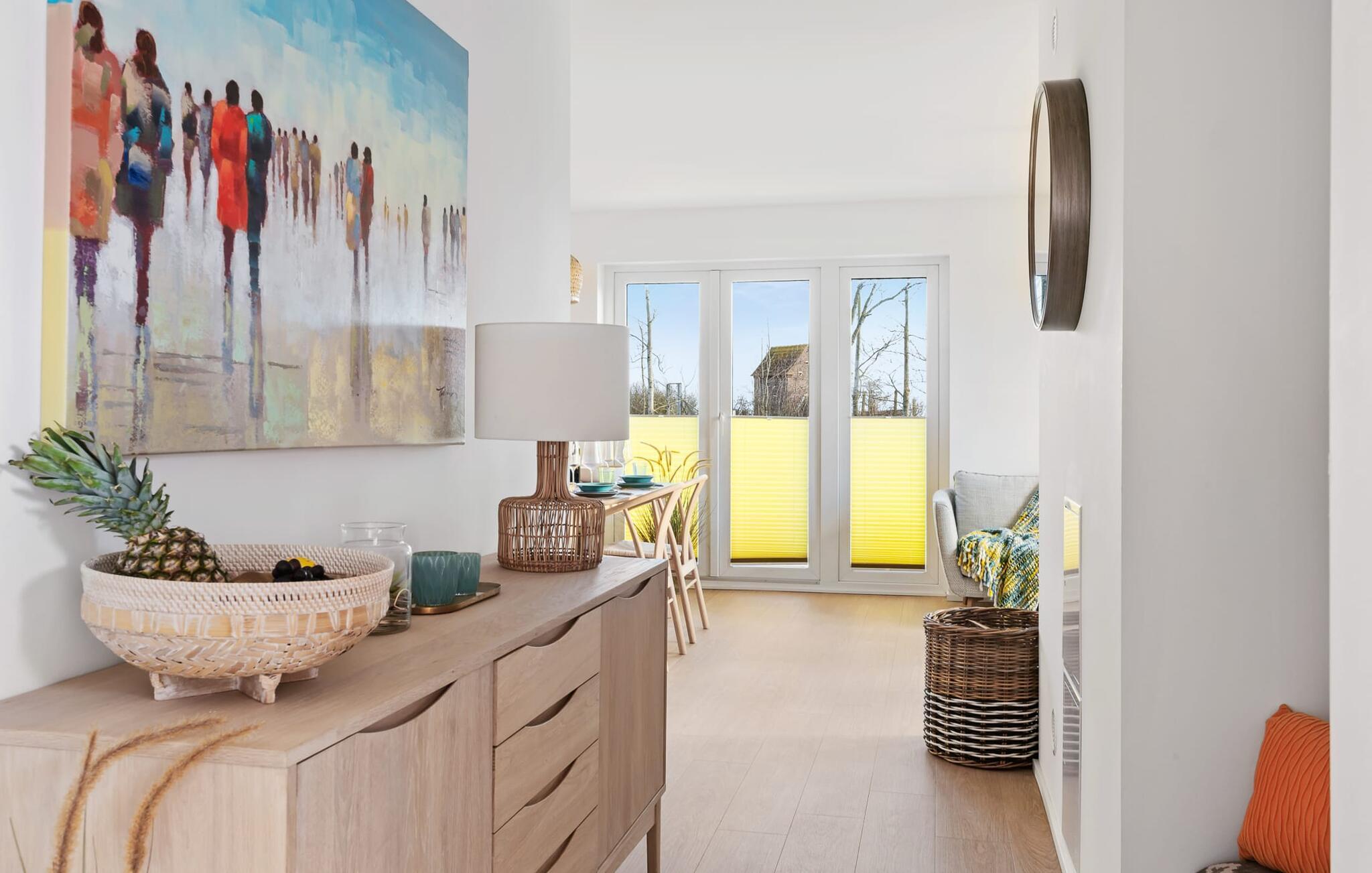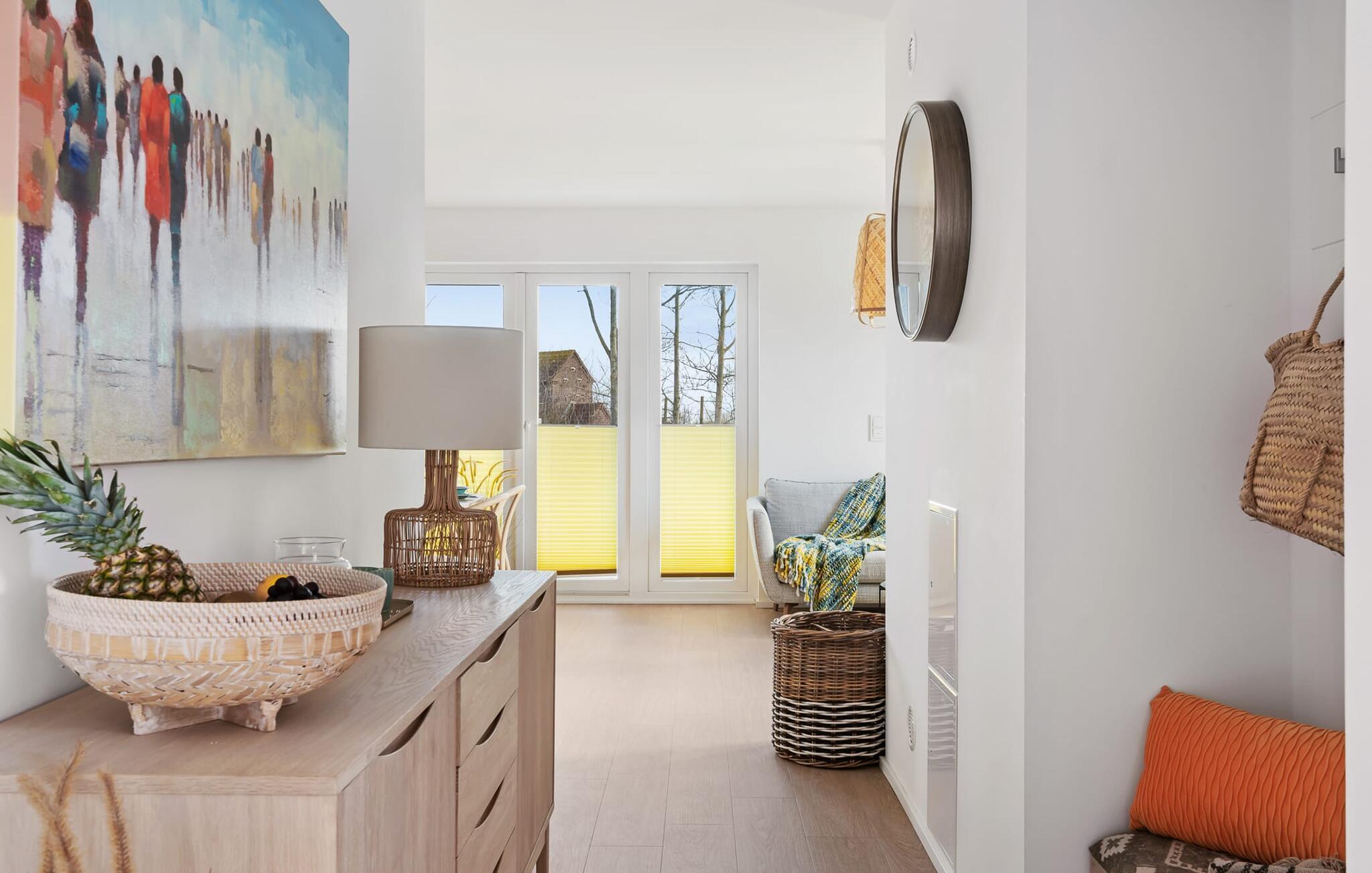 MATROSENLOFT ist eine großzügige und geräumige Design-Ferienlounge im Erdgeschoss mit direktem Blick auf die Naturschutz-Salzwiesen und Felder.