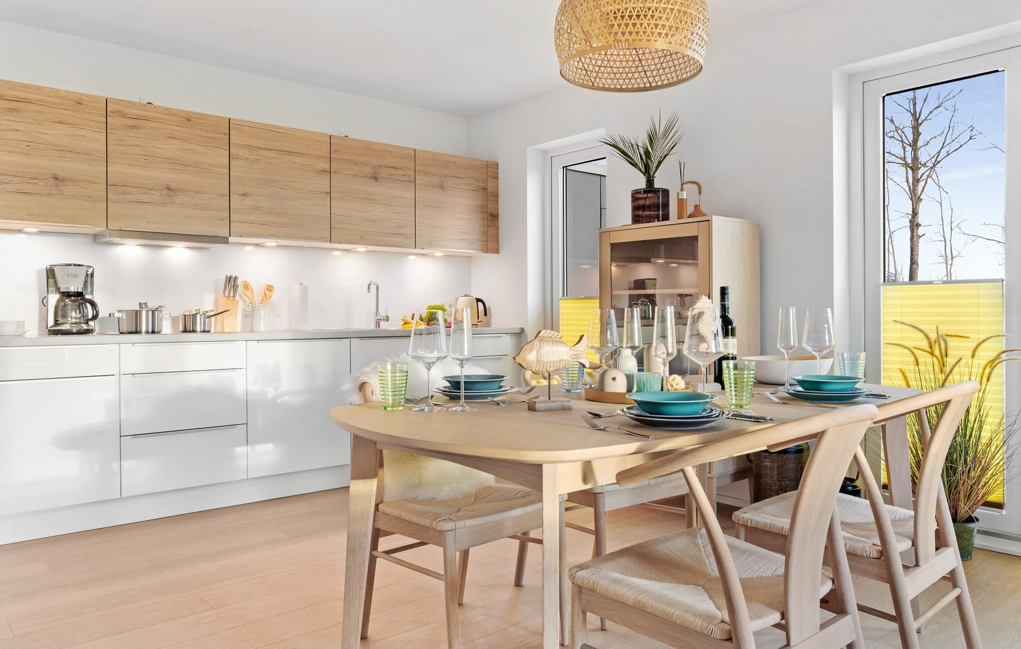 Die integrierte Küche ist perfekt und hochwertig ausgestattet und gemeinsames Kochen macht viel Spaß. Die fertigen Leckereien dann auf der Terrasse genießen oder einen geselligen Grillabend mit dem Grill einläuten, das ist Urlaub pur.