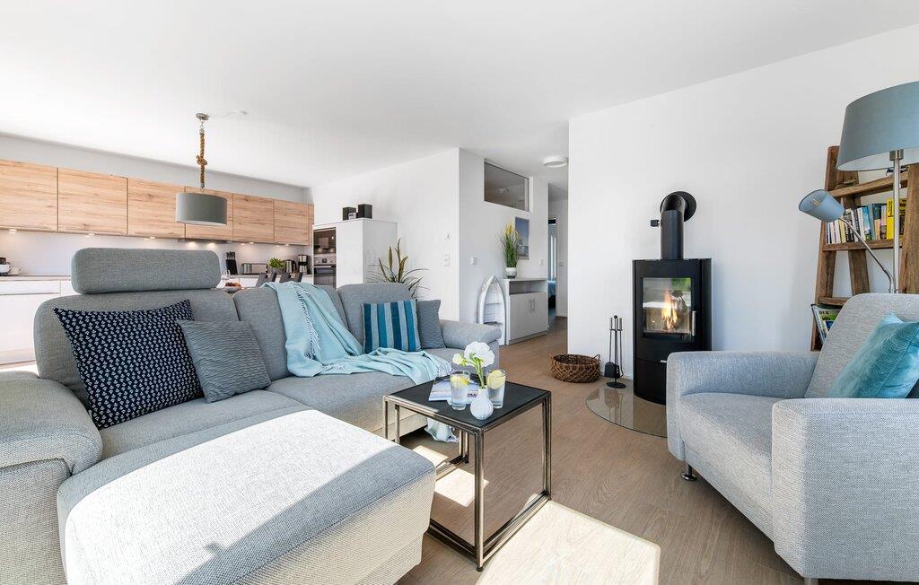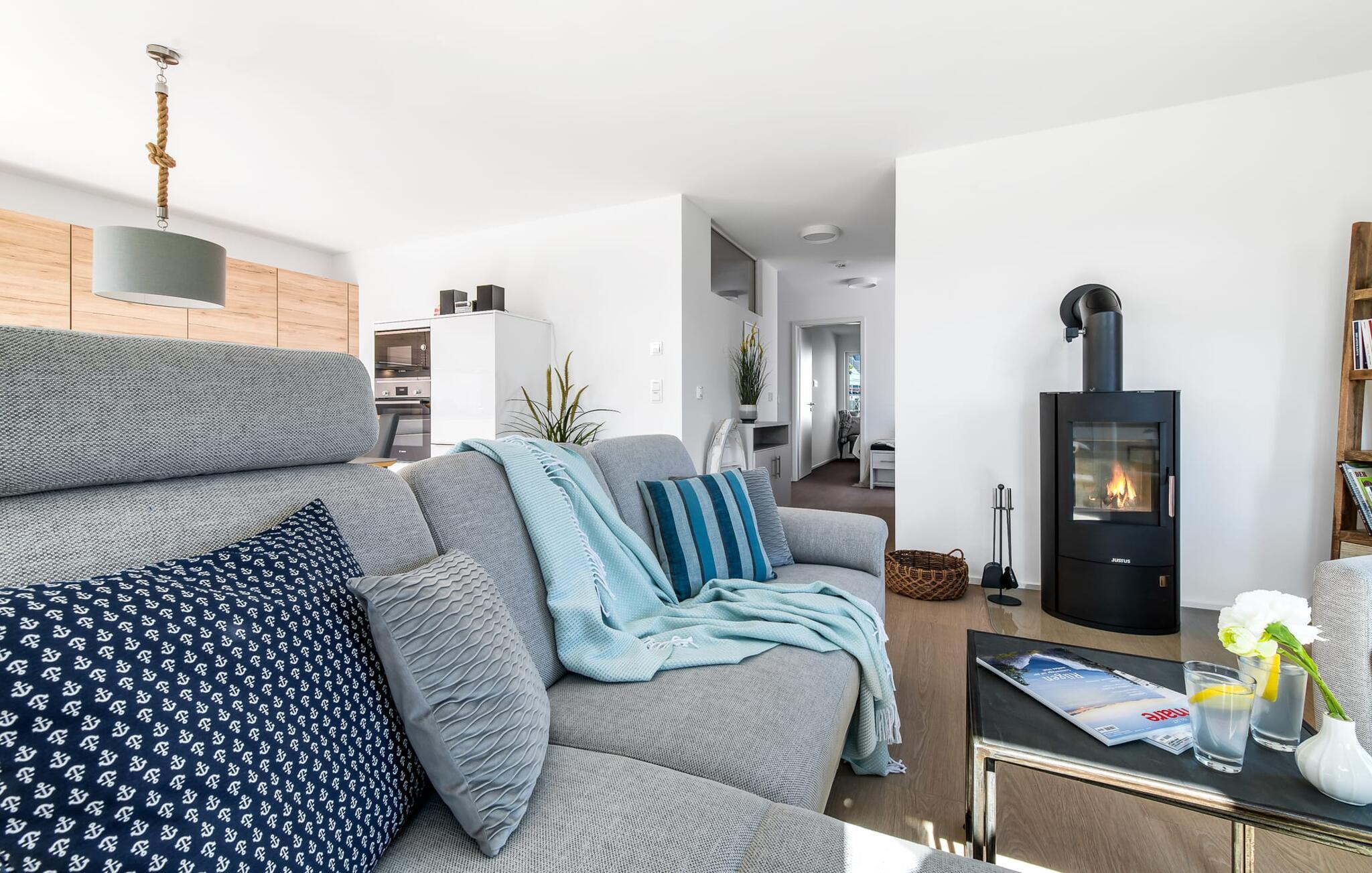 Die gemütliche Wohnlandschaft lädt zu gemeinsamen Spiel- und Fernsehabenden ein. Ihr könnt nach einem erlebnisreichen Urlaubstag vor dem knisternden Kamin entspannen.
