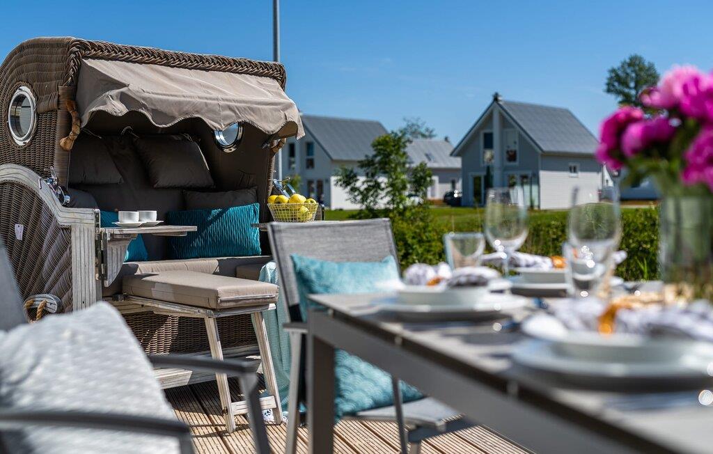 Direkt vom Wohnbereich der Matrosenlounge aus betretet ihr die große Terrasse mit Süd-West-Ausrichtung. Diese bietet erholsame Stunden fernab von den Aktivitäten des restlichen OstseeResots Olpenitz.