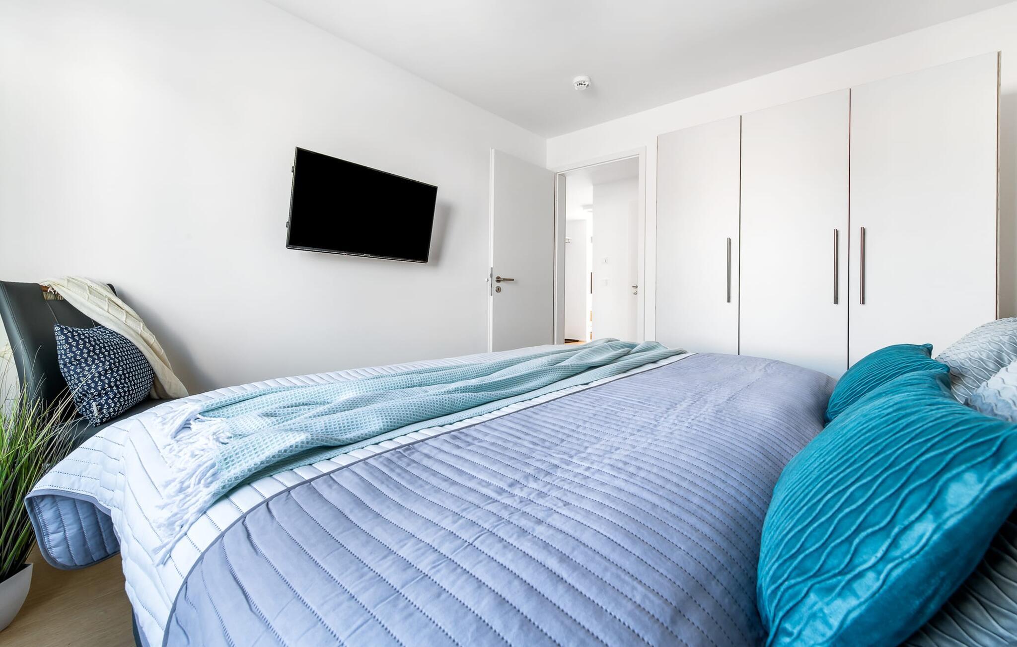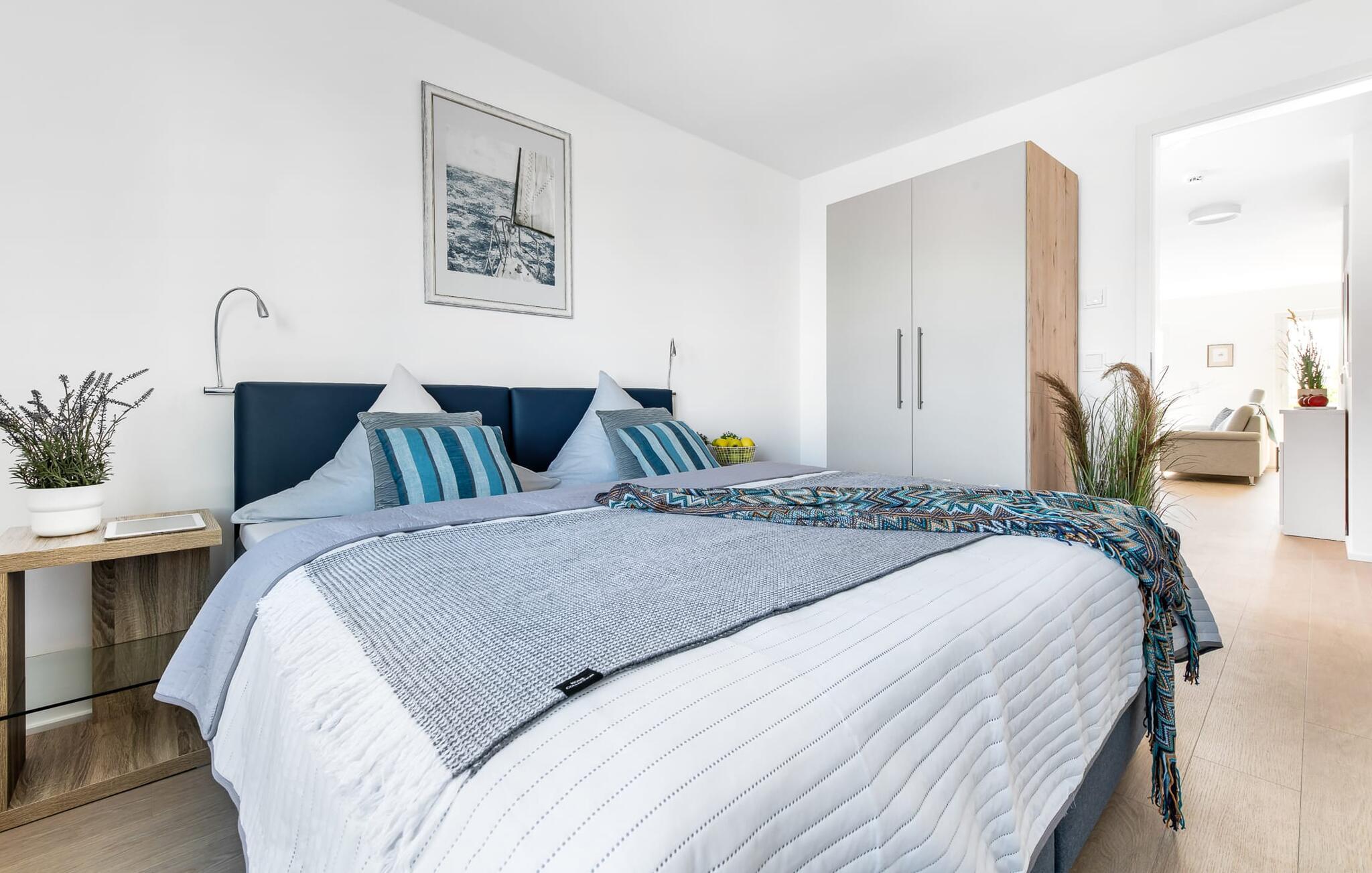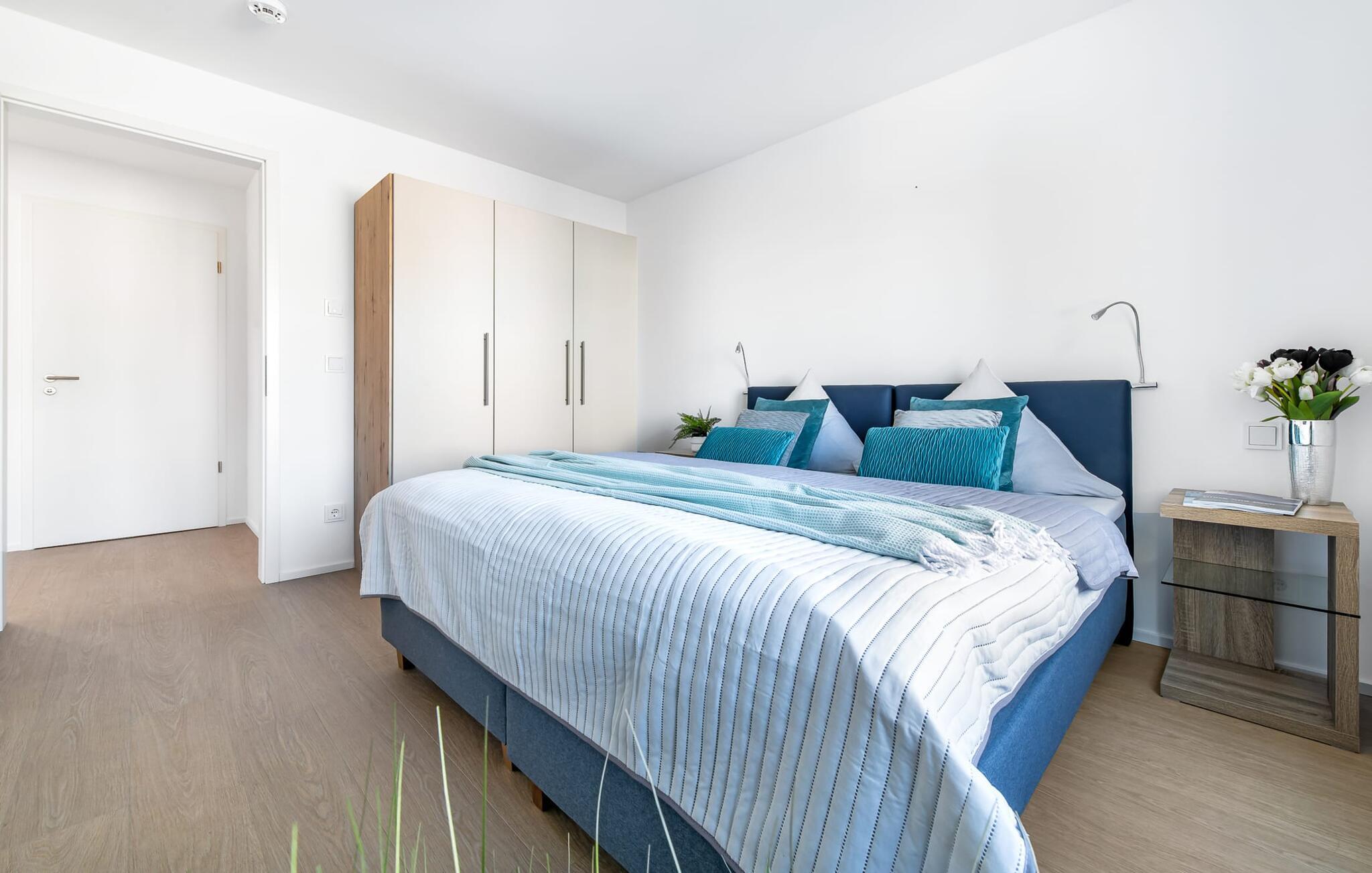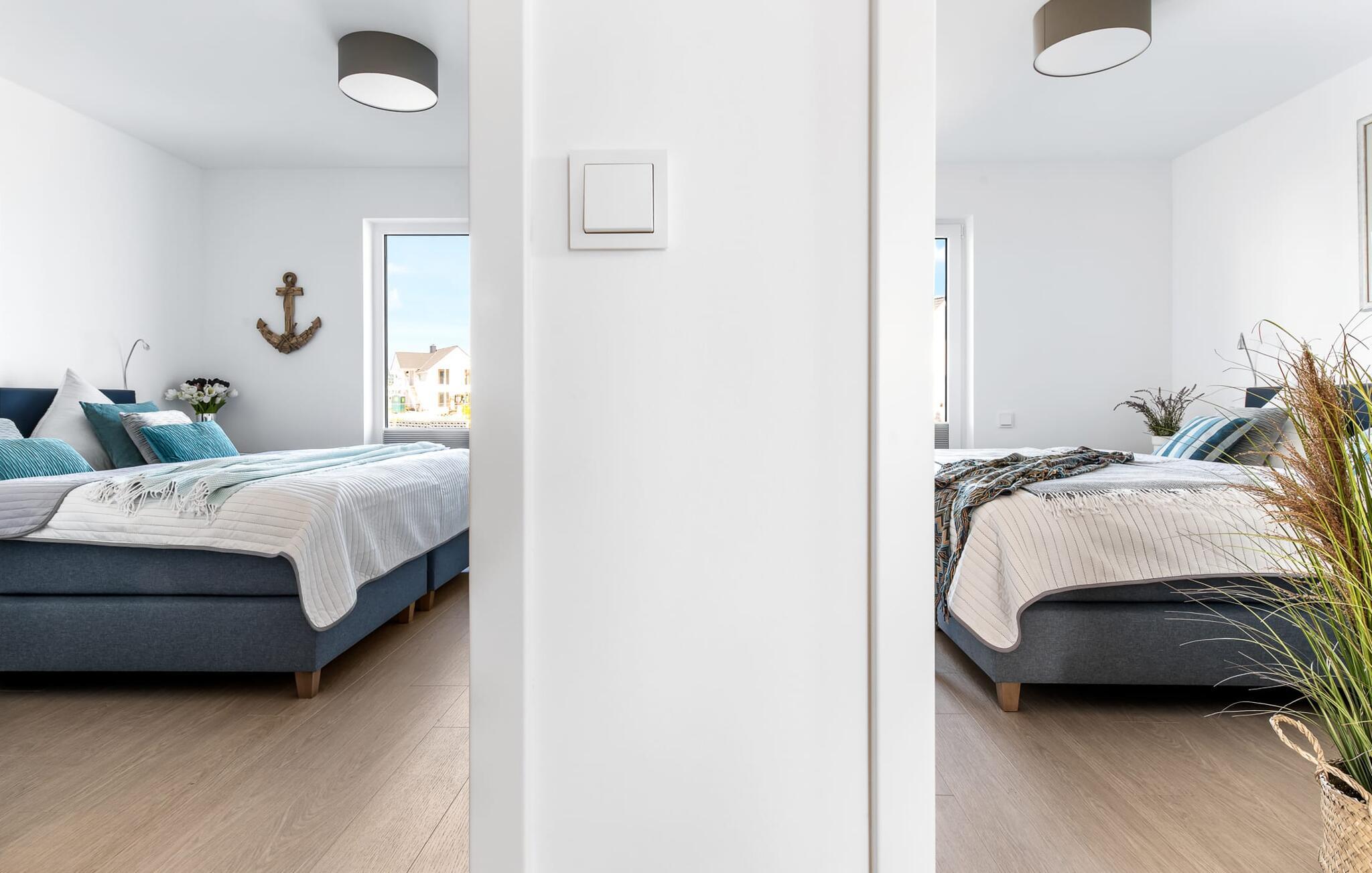 Für die nächtliche Erholung stehen zwei Schlafzimmer mit großzügigen Boxspringbetten zur Verfügungdie auf Wunsch getrennt gestellt werden können.