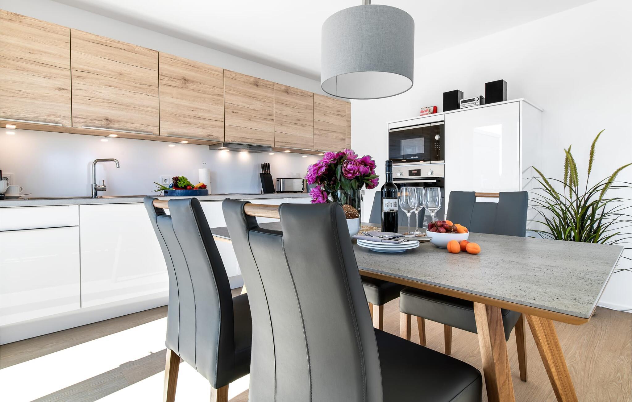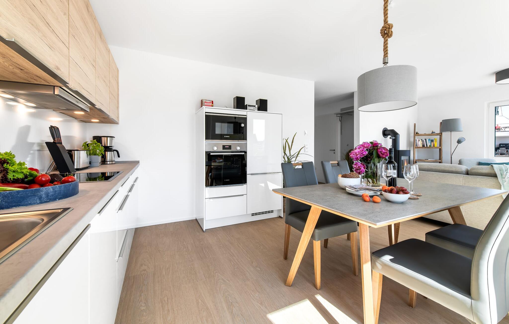 In der offenen Wohnküche findet ihr alles was das Hobbykoch-Herz begehrt! Dort macht gemeinsames Kochen Spaß!