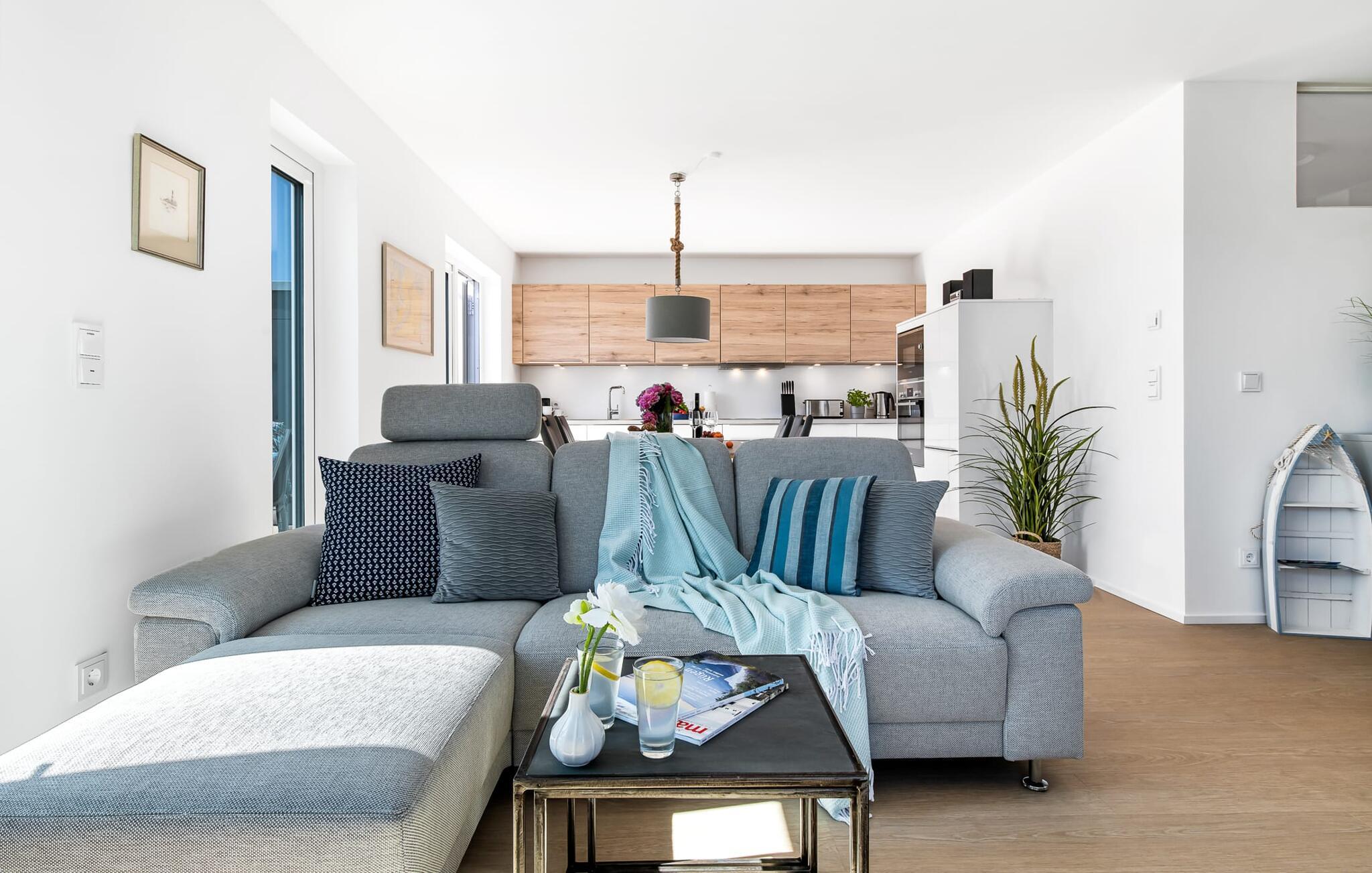 Die Matrosenlounge ist eine moderne und geräumige Ferienwohnung im Erdgeschoss und überzeugt mit maritimen Flair und heller, freundlicher Einrichtung.