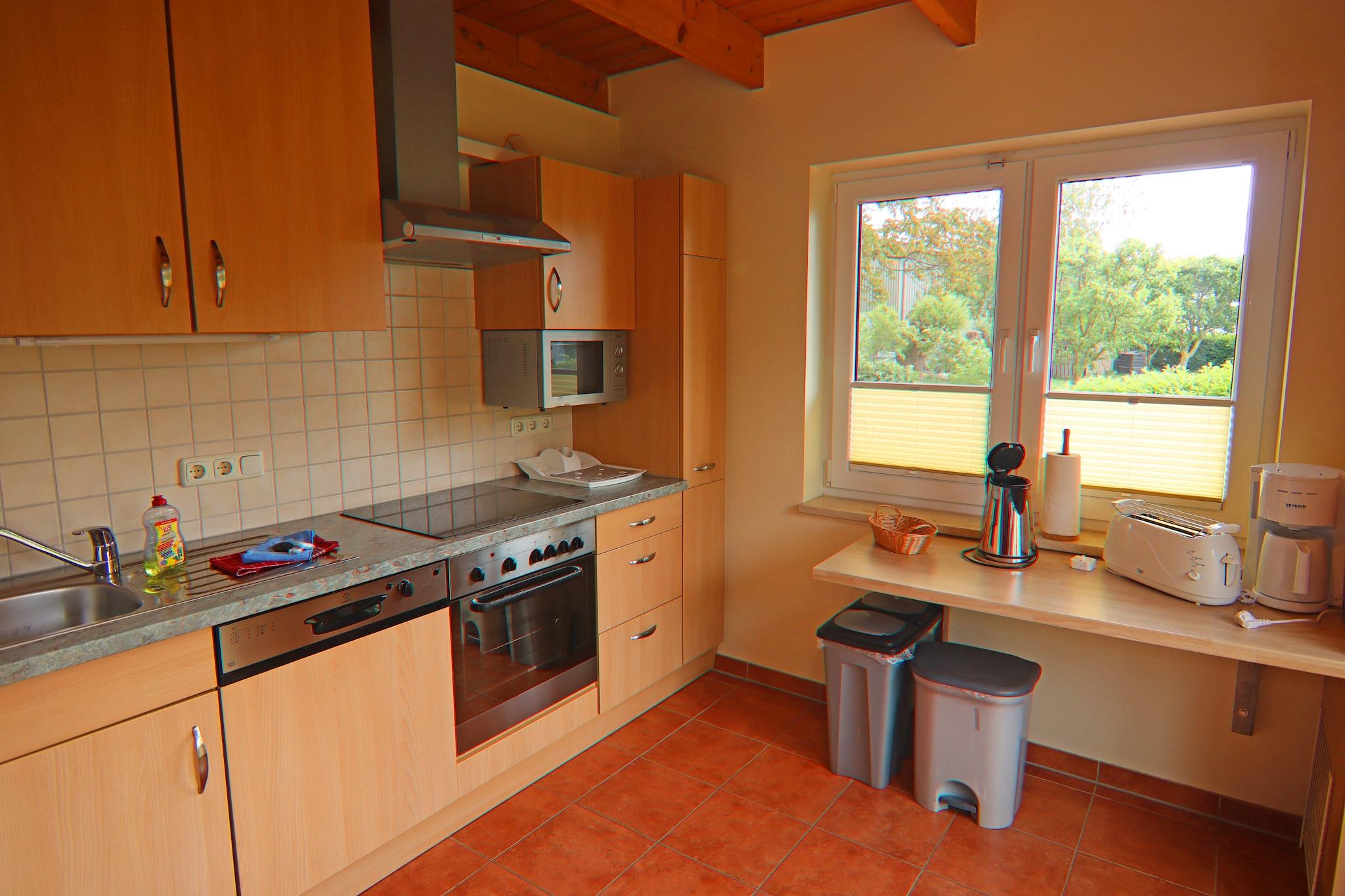 Parterre: (offene Küche(Wasserkocher, Toaster, Kochherd(4 Kochplatten, Ceranfeld), Dunstabzugshaube, Kaffeemaschine, Backofen, Mikrowelle, Spülmaschine, Kühlschrank(+ Gefrierfach)), Wohn/Esszimmer(TV(Flatscreen), Esstisch(6 Personen), Kaminofen, Sitzecke), Schlafzimmer(Doppelbett), Badezimmer(Dusche, Waschbecken, Toilette, Waschmaschine, Föhn), Flur) In der 1. Etage: (Schlafzimmer(2x Einzelbett, TV(Flatscreen), Sitzecke), Schlafzimmer(Doppelbett, Sitzecke), Treppenschutzgitter) Heizung, Terrasse(alleinige Nutzung), Gartenmöbel, Grill, Parkplatz, Kinderbett, Hochstuhl, Fliegenfenster