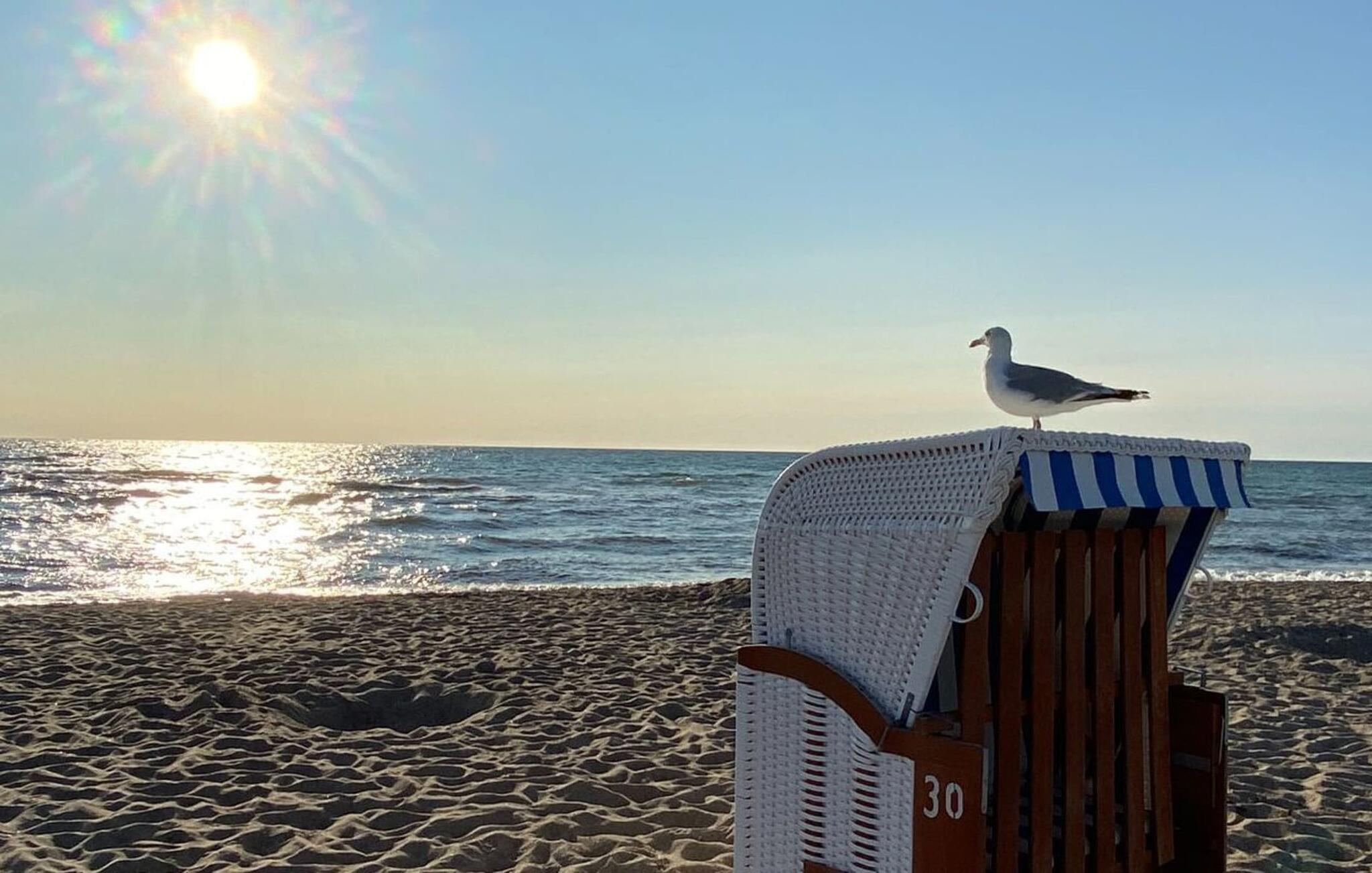 Genießt ihr hier Sonnenaufgänge und entspannte Frühstücke bei Ostseesonne und Blick auf das Meer und die Wiesen des direkt angrenzenden Naturschutzgebietes mit Kanada- und Wildgänsen und auf den Sporthafen auf der anderen Seite.