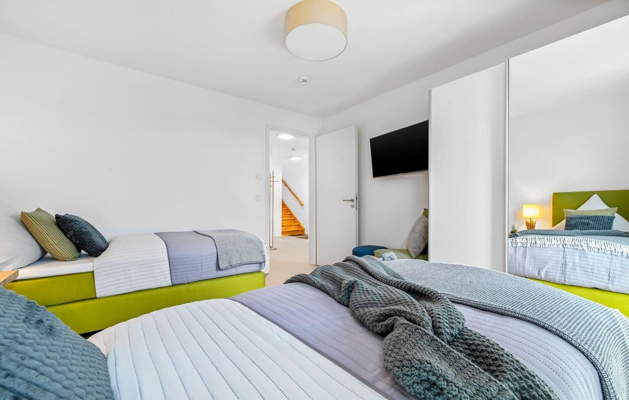 Beim Betreten der Ferienwohnung im Obergeschoss, beginnt vom ersten Moment an die Entschleunigung. Ihr befindet euch direkt im Ruhebereich der Wohnung. In drei Schlafzimmern mit bequemen Betten findet ihr Platz für bis zu 6 Personen. Zwei der Schlafzimmer sind zudem mit Fernsehern ausgestattet. Egal für welches Schlafzimmer ihr euch entscheidet, erholsamer Schlaf ist euch sicher.