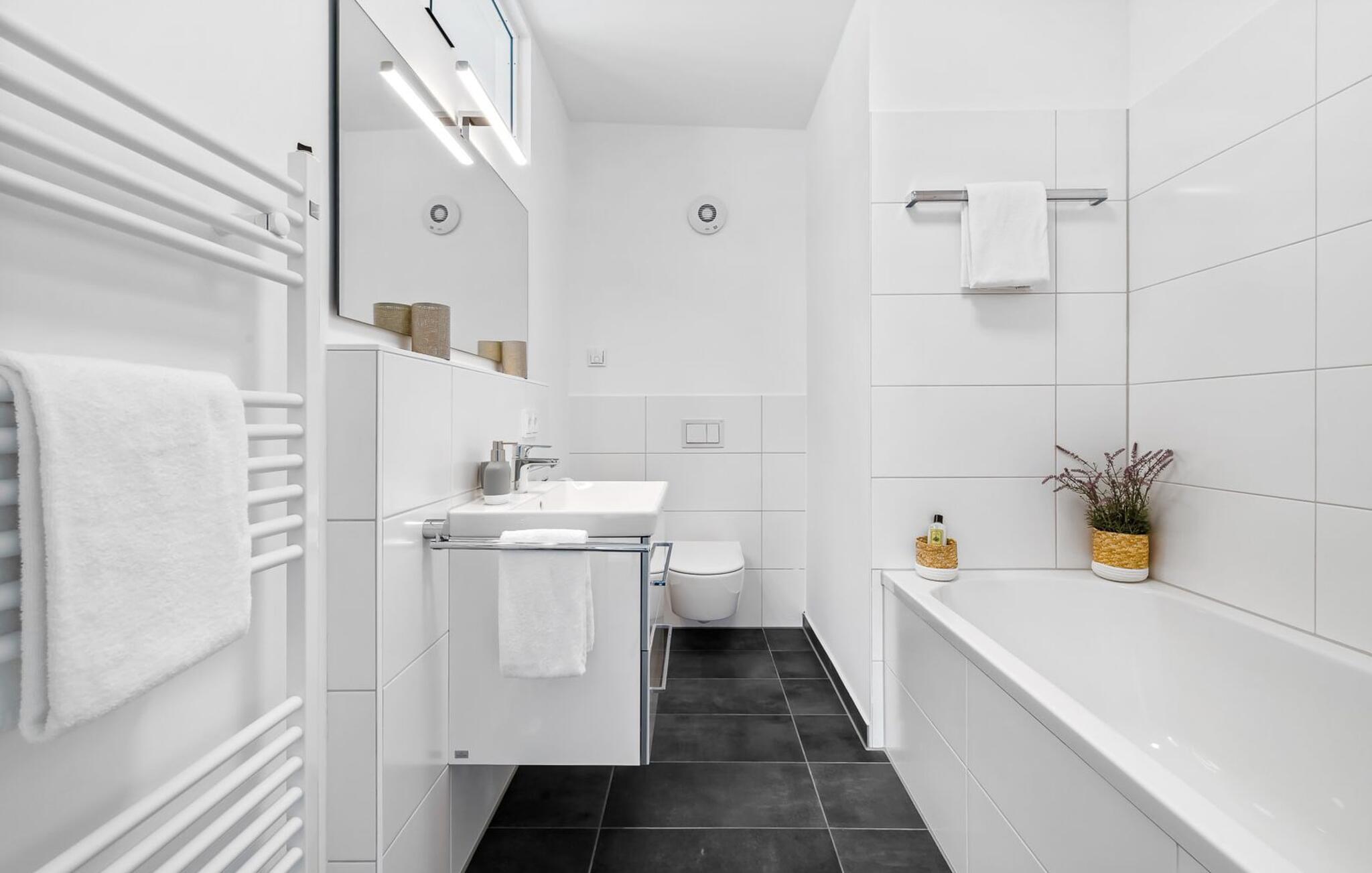 Ein zweites Vollbad mit Dusch-Badewanne rundet das Komplettpaket für einen erholsamen Urlaub ideal ab.