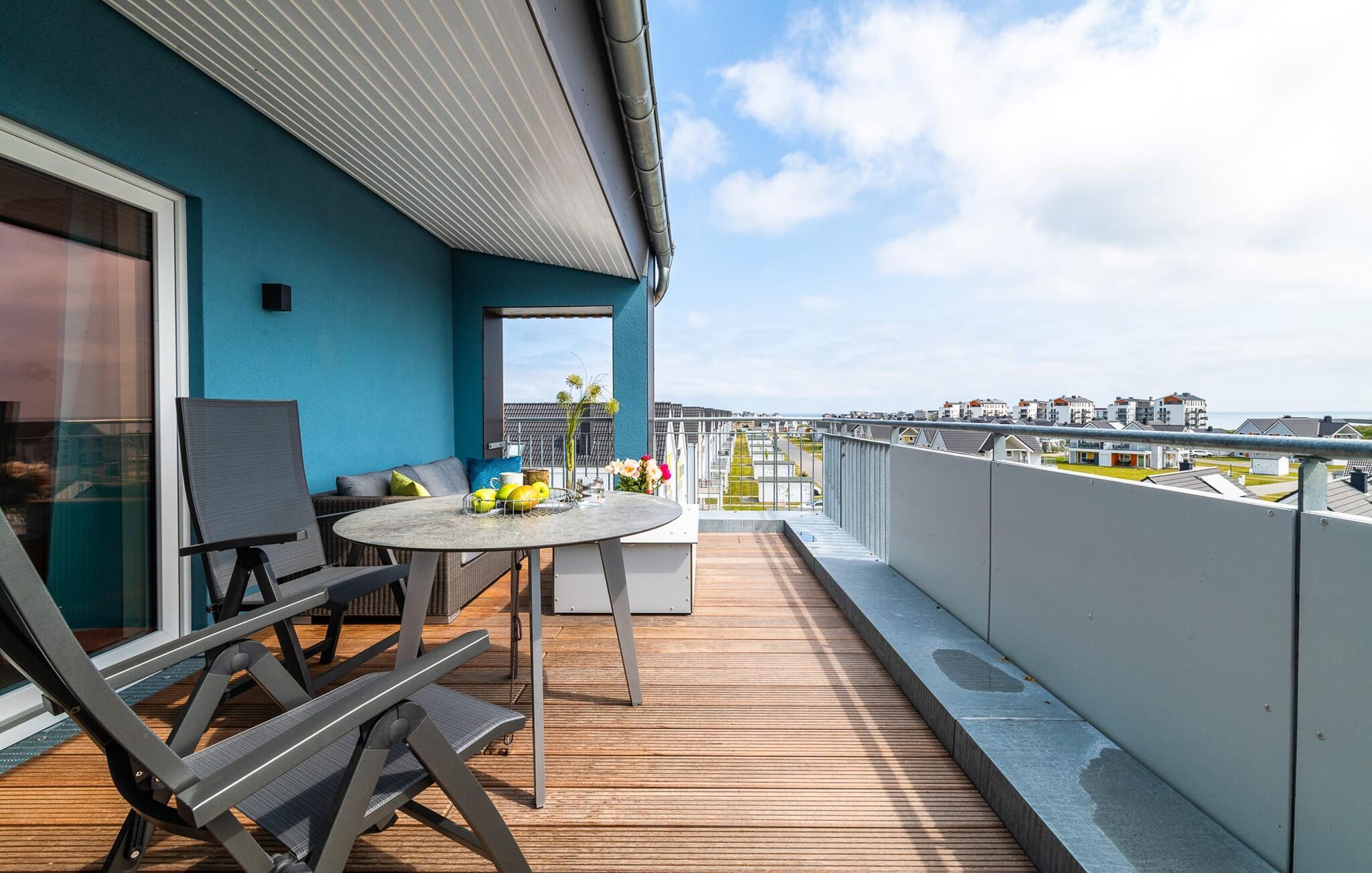 Unser Lieblingsplatz: Den Blick zu zweit über das Meer von der Dachterrasse aus mit einem kühlen Getränk genießen.