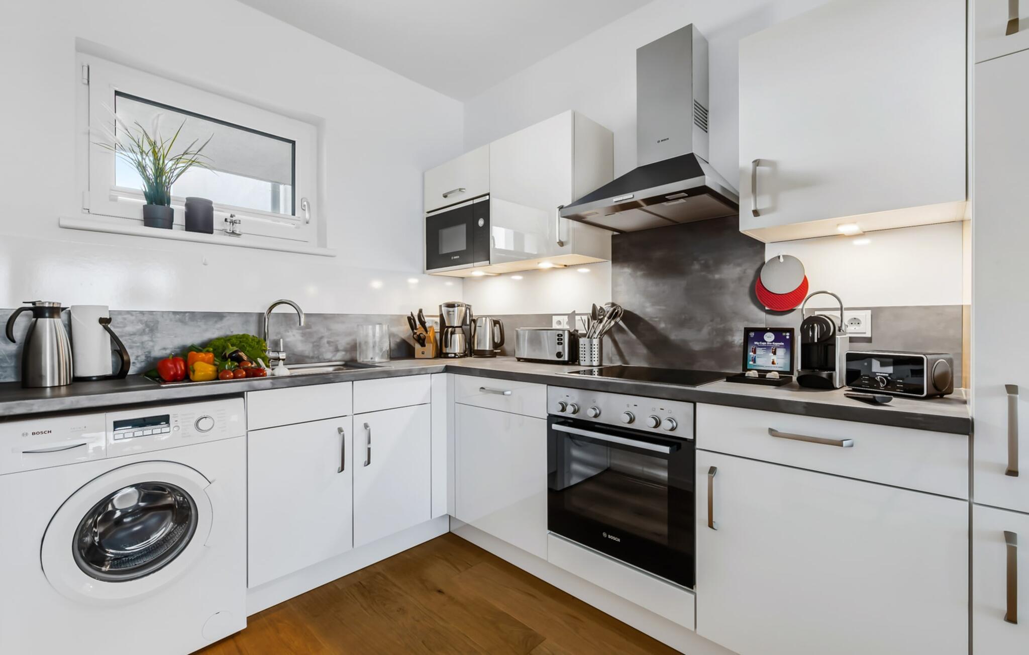 Die integrierte Küche, mit hochwertigen elektrischen Küchenhelfern, ist die helle Freude einer jeden Hausfrau und weckt selbst bei Kochmuffeln Interesse.