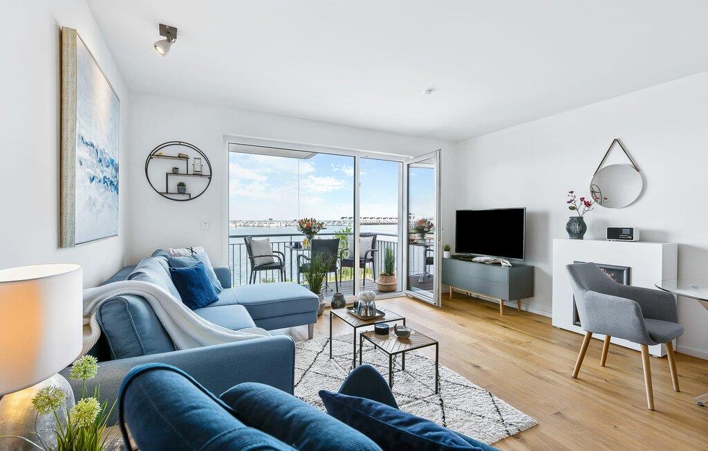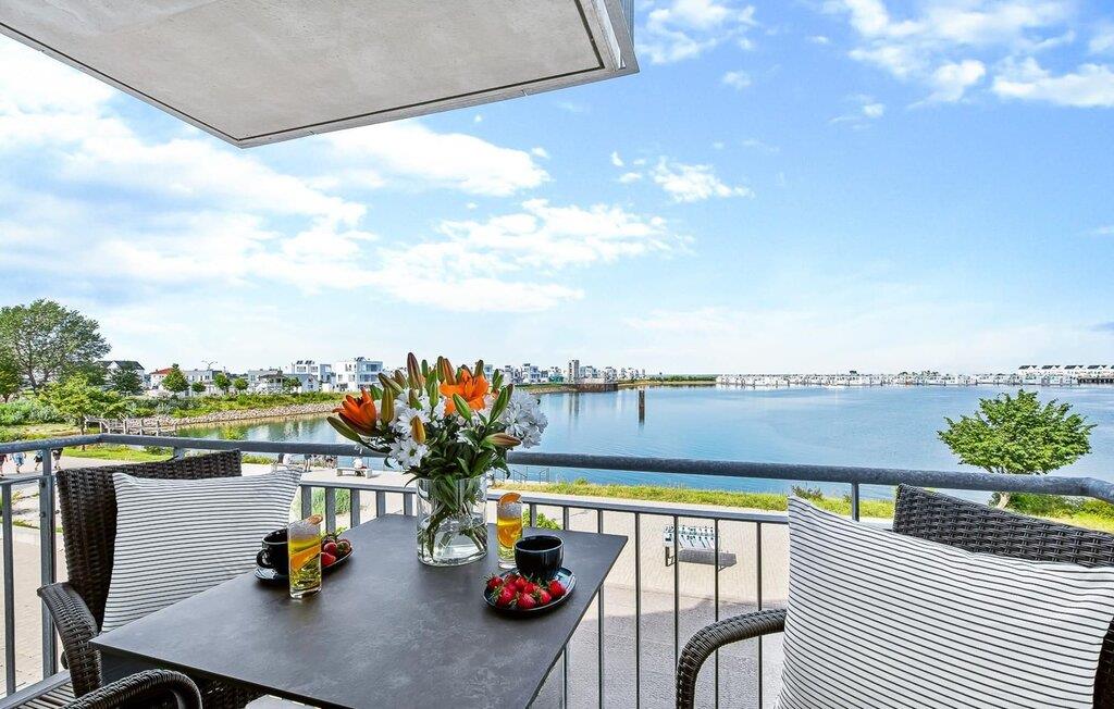Moderne Ferienwohnung OstseeResort Olpenitz direkt an der Hafenpromenade mit traumhaftem Meerblick und Balkon.