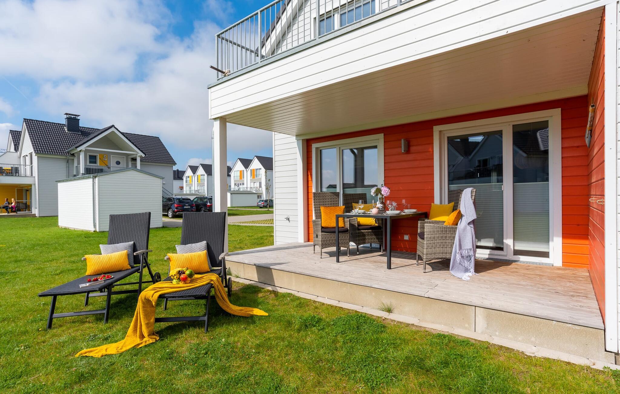 Gemütliche Ferienwohnung MeerVergnügen mit Garten, Sauna und Meerblick im OstseeResort Olpenitz.