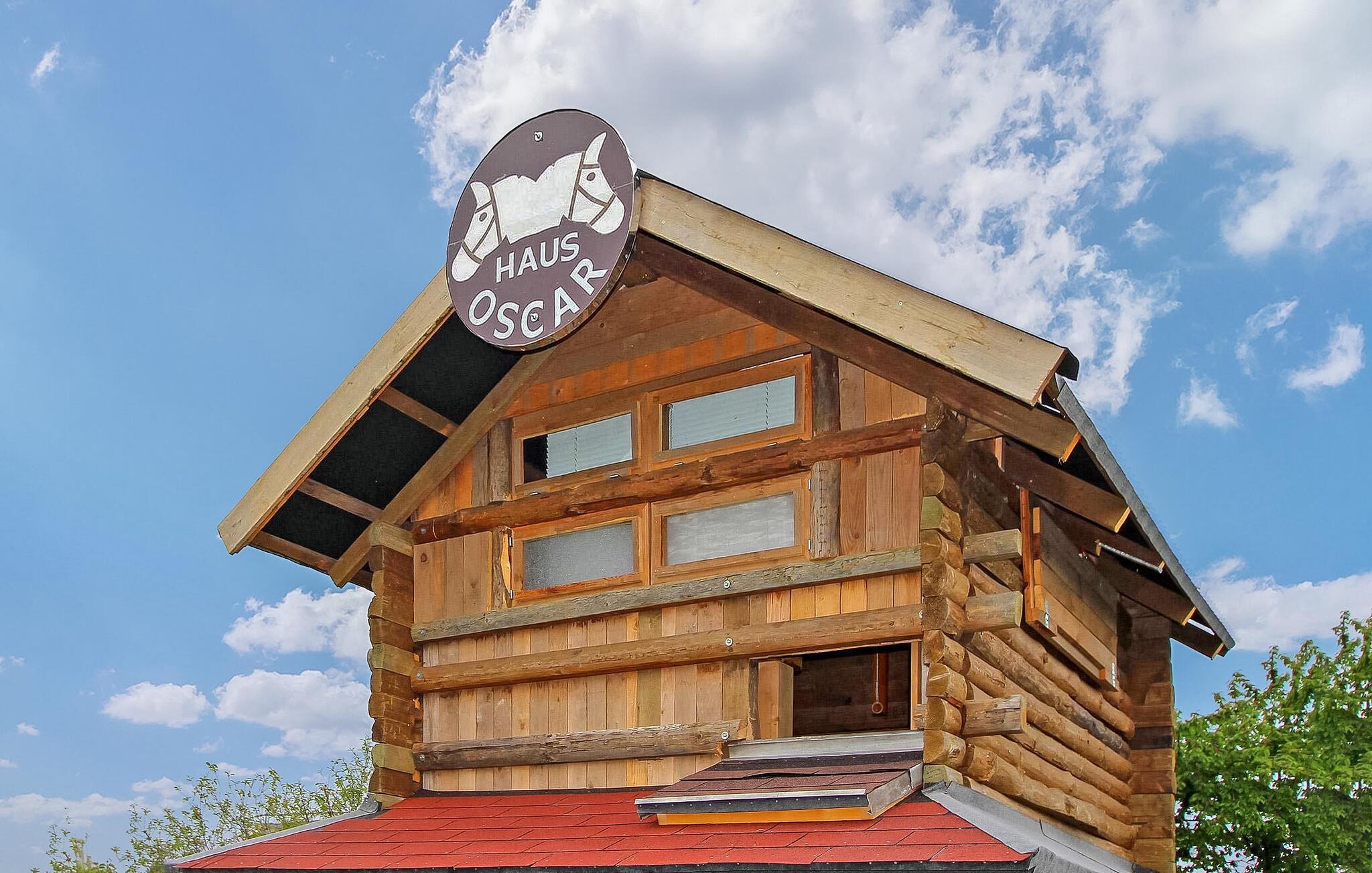 Zusätzlich stehen eine möblierte Terrasse, Parkplatz, Fahrrad-Abstellraum, Grill und Sonnenliegen sowie kostenfreies W-LAN (nach Verfügbarkeit, keine gleichmäßige Netzabdeckung!) zur Verfügung. Außerdem kann der große Garten hinter der Ferienwohnung mit mehreren Sitzecken, einem Pool, einer gesonderten Grillecke mit Feuerstelle und (in Absprache mit dem Gastgeber) eine Hochstand-Blockhütte als besonderes Naturerlebnis genutzt werden. Der Eigentümer braut selbst Bier und bietet auf Anfrage Informationsabende zur Braukunst oder einen Brautag an, bei dem die Gäste selbst Bier herstellen können (wetterabhängig).