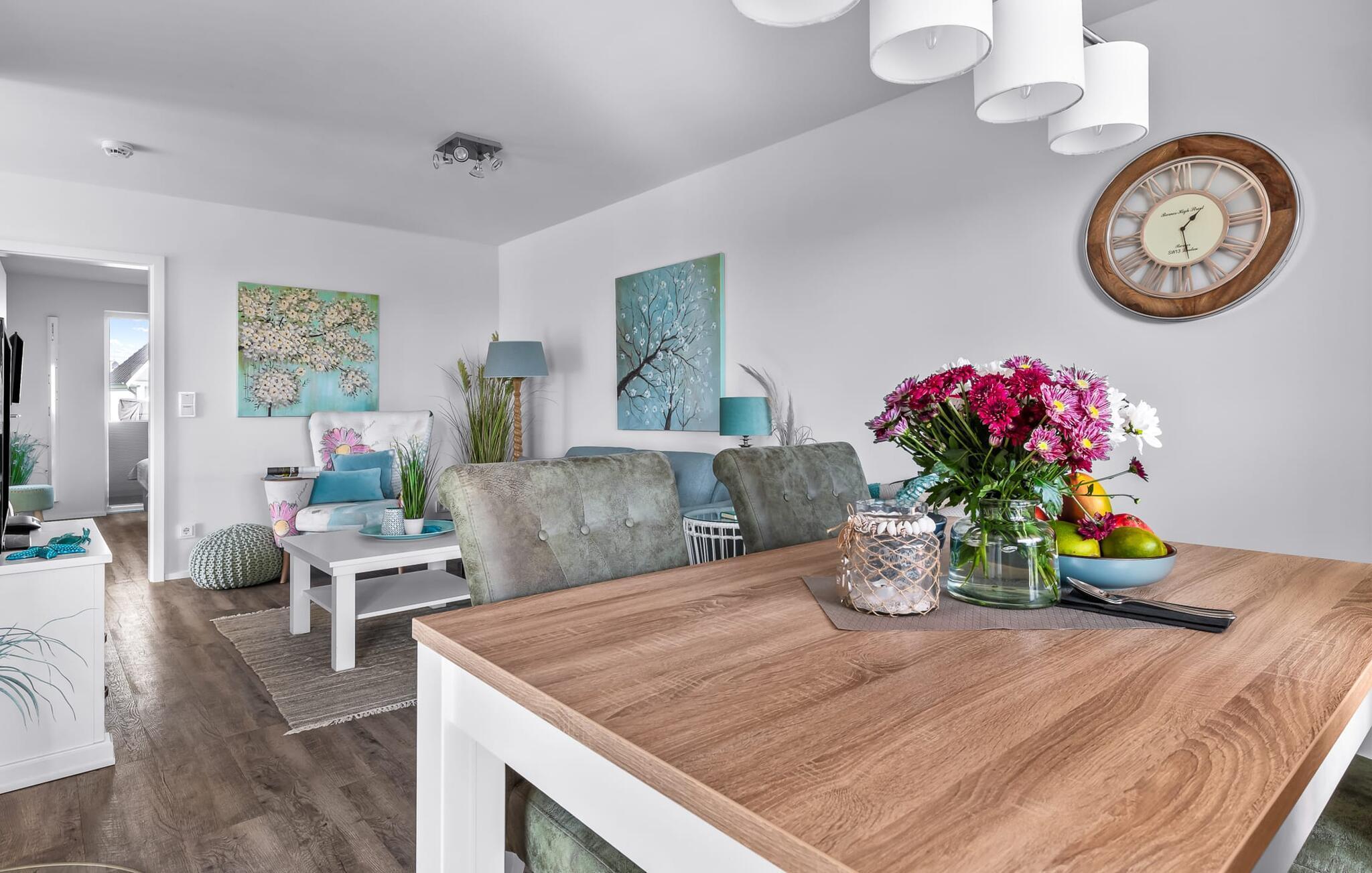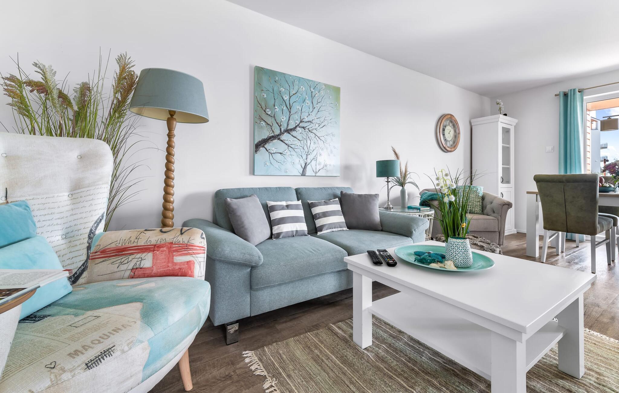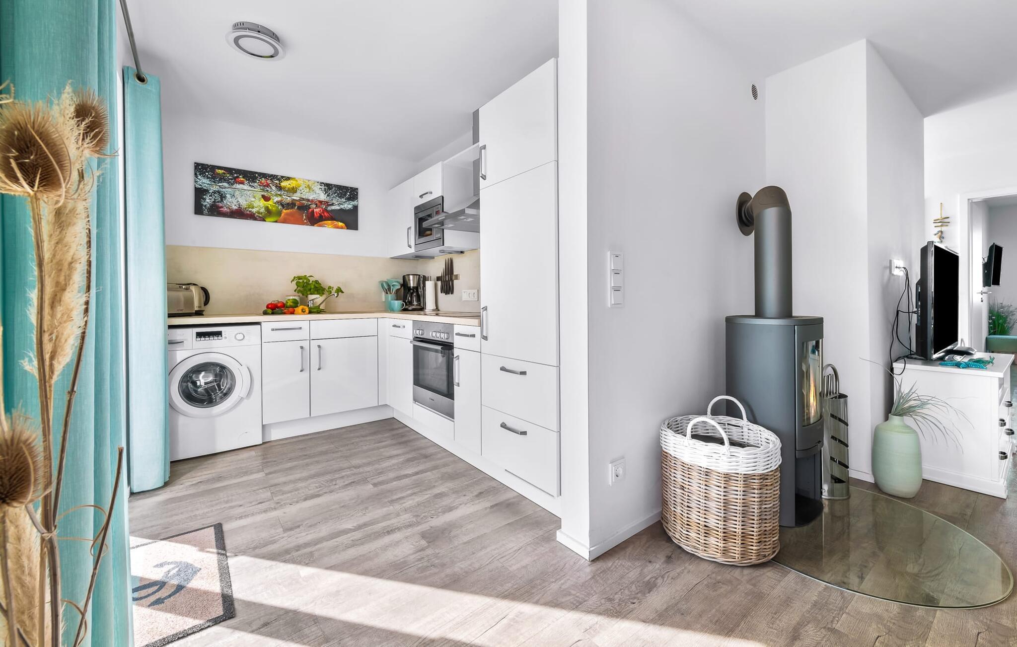 In der himmelblauen Einrichtung werdet ihr euch sofort himmlisch” wohlfühlen. Ein kuscheliger Wohnbereich mit einem Sofas und einem Sessel, einem Kaminofen und einem Fernseher übergehend in die hochwertig ausgestattete Küche, bildet das Zentrum von Mein Lieblingsplatz. Und wenn die Sonne lacht, öffnet die Türen zur angrenzenden Terrasse. Die Terrasse inklusive Gartenmöbeln lädt auch zu geselligen Grillabenden eindraußen schmeckt das Essen gleich viel besser, denn am Horizont sieht man die Ostsee hin und wieder glitzern.