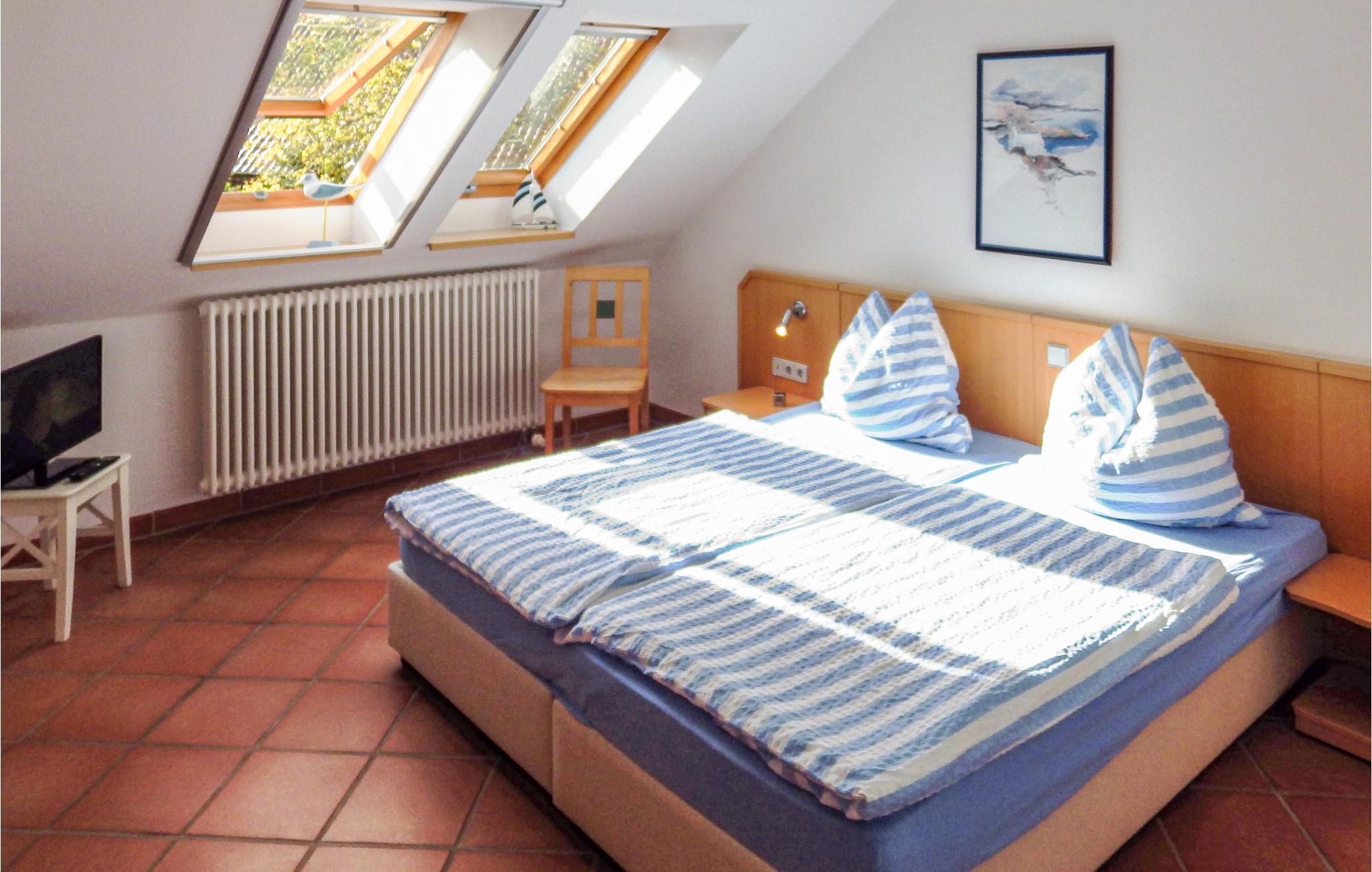 Im separaten Schlafzimmer befindet sich ein gemütliches Doppelbett, im Wohnzimmer befinden sich zwei weitere Schlafplätze. Auf dem Balkon können Sie entspannen oder gemeinsame Grillabende genießen. Gartenmöbel und Grill stehen hier für Sie bereit. Die Küche ist vollständig ausgestattet und verfügt über beispielsweise über ein Gefrierfach und eine Dunstabzugshaube.
