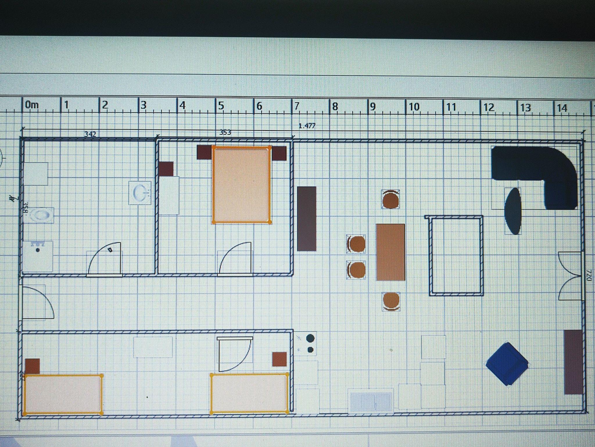 Des weiteren gehören ein Badezimmer, ein Schlafzimmer mit Doppelbett und ein Kinderzimmer mit zwei Einzelbetten dazu.