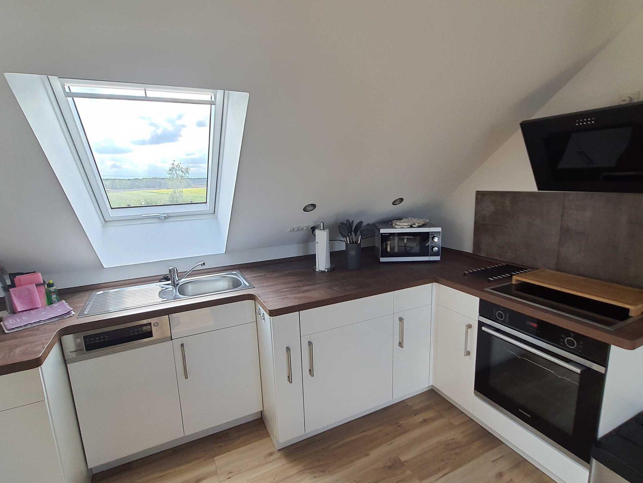 In der offenen Küche können Sie Dank integrierter Geräte, wie zum Beispiel Ofen, Dunstabzugshaube, Cerankochfeld und Mikrowelle, nach Herzenslust kochen. Und auch nach dem Essen können Sie Dank Spülmaschine direkt auf die bequeme Couch oder den tollen Ausblick vom Balkon genießen.
