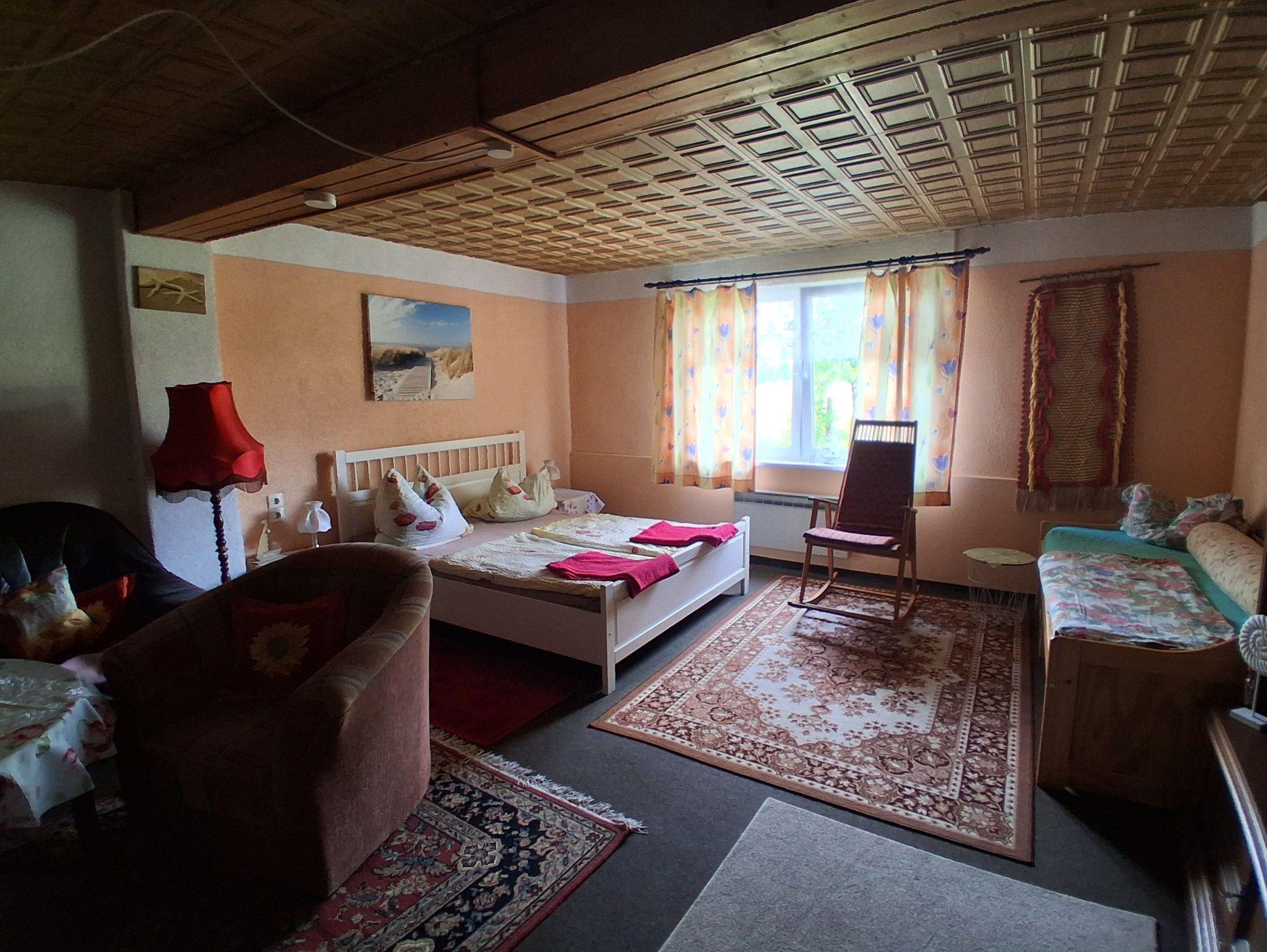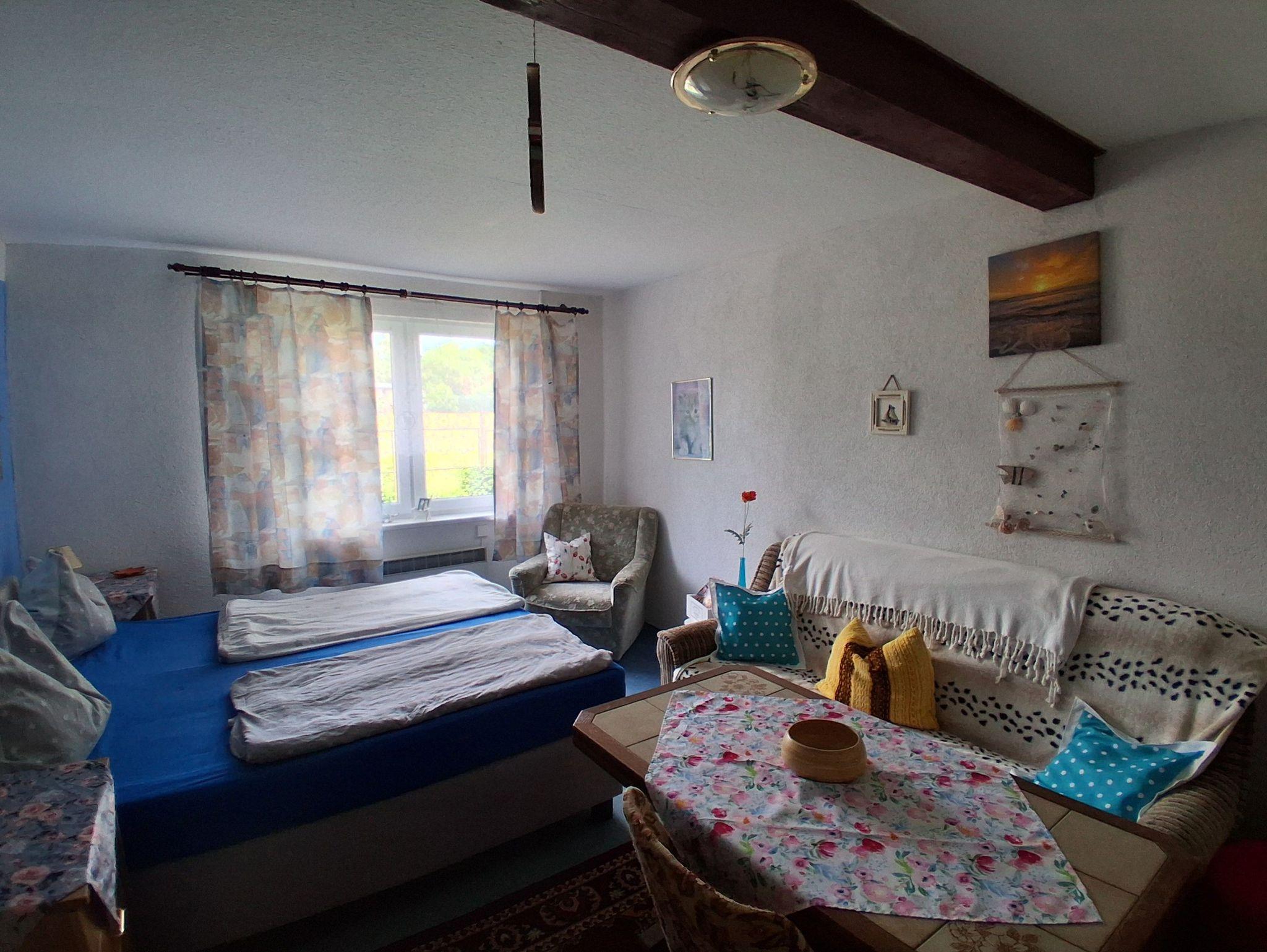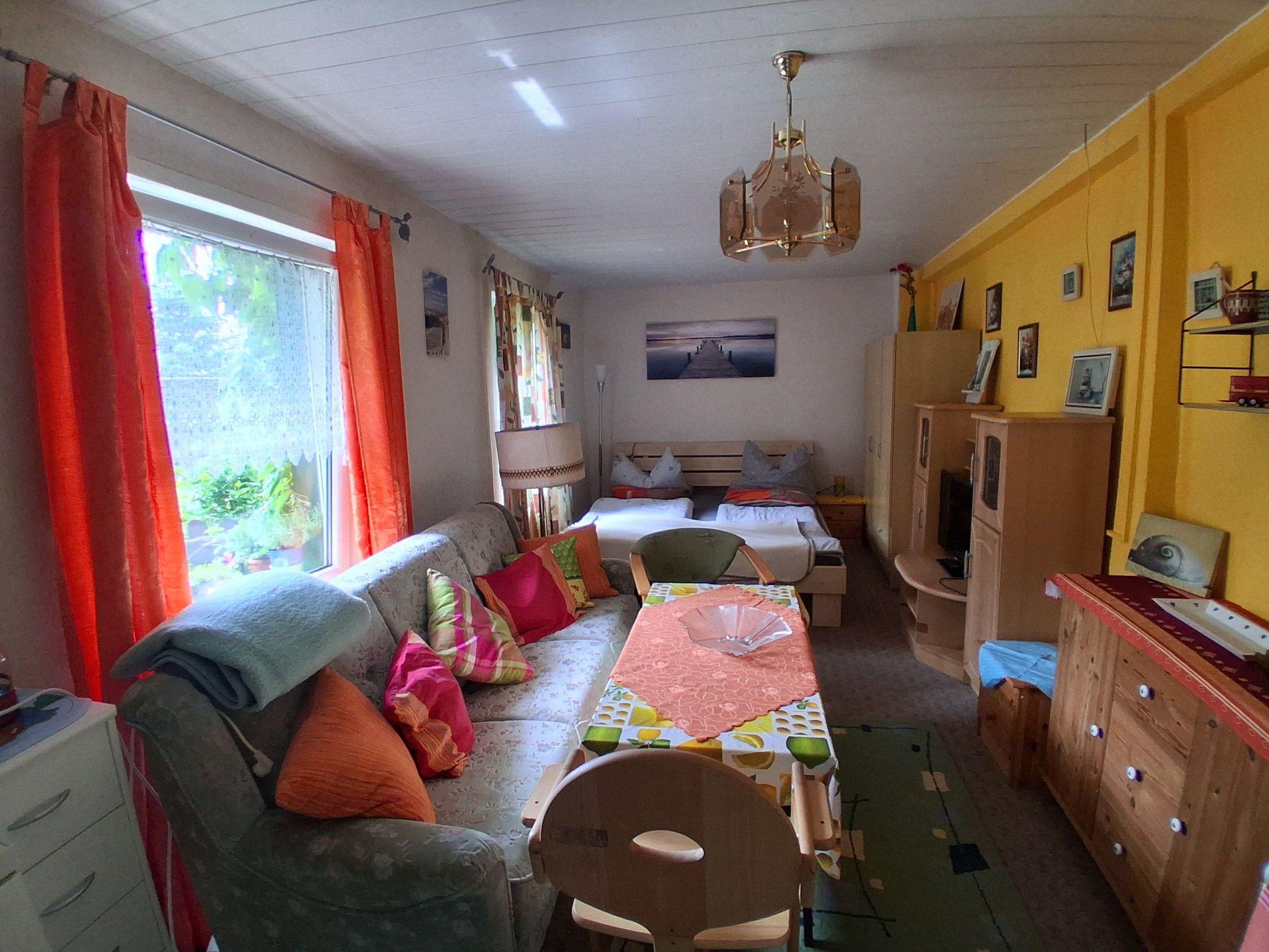Die Ferienwohnung ist ca. 120 m² groß und befindet sich im Erdgeschoss. Sie verfügt über drei kombinierte Wohn- & Schlafbereiche mit Sofa und Doppelbetten, zwei Bäder mit Dusch/WC einer separaten Küche. Im großen kombi. WZ/SZ befindet sich ein Fernseher und im kleinen WZ/SZ ein separate Kochgelegenheit. Die Küche ist ausgestattet mit einer Küchenzeile mit Kaffeemaschine, Toaster, Wasserkocher und Kühlschrank. Die Erstausstattung Bettwäsche und Handtücher sind im Gesamtpreis enthalten. Im Garten steht Ihnen eine Sitzecke und ein Grill zur Verfügung, mit dem Sie einen perfekten Grillabend einplanen können. Außerdem befindet sich im Garten ein Trampolin und ein Basketballkorb.