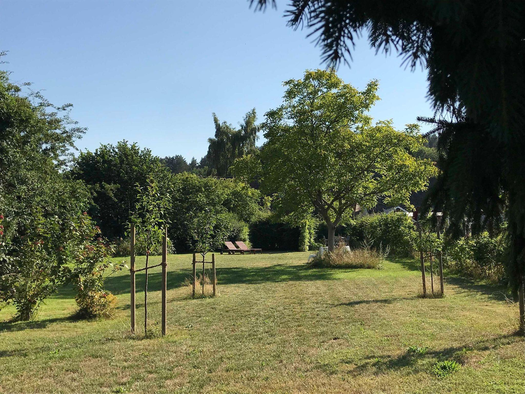Großer, nicht eingezäunter Garten zur gemeinsamen Nutzung mit separatem Sitzplatz, Gartenmöbeln und Grillmöglichkeit.