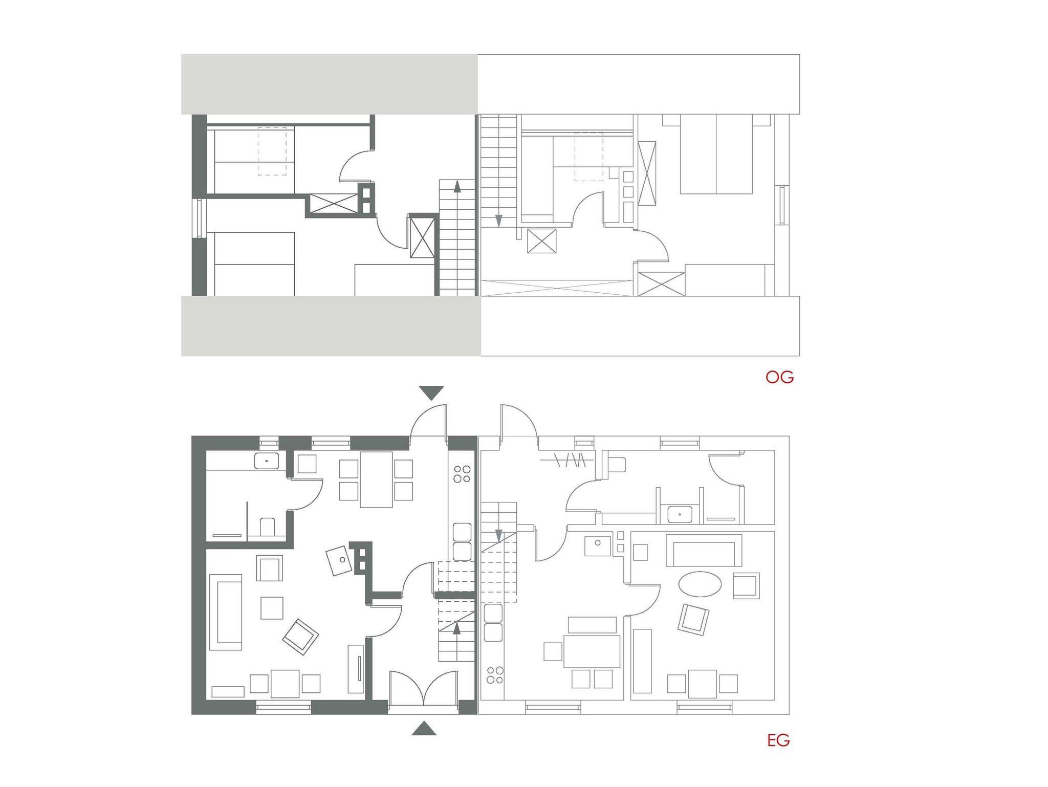 Im OG : Schlafzimmer 1 : Doppelbett (160x200), Einzelbett (90x200), Schlafzimmer 2 : Doppelbett (160x200).