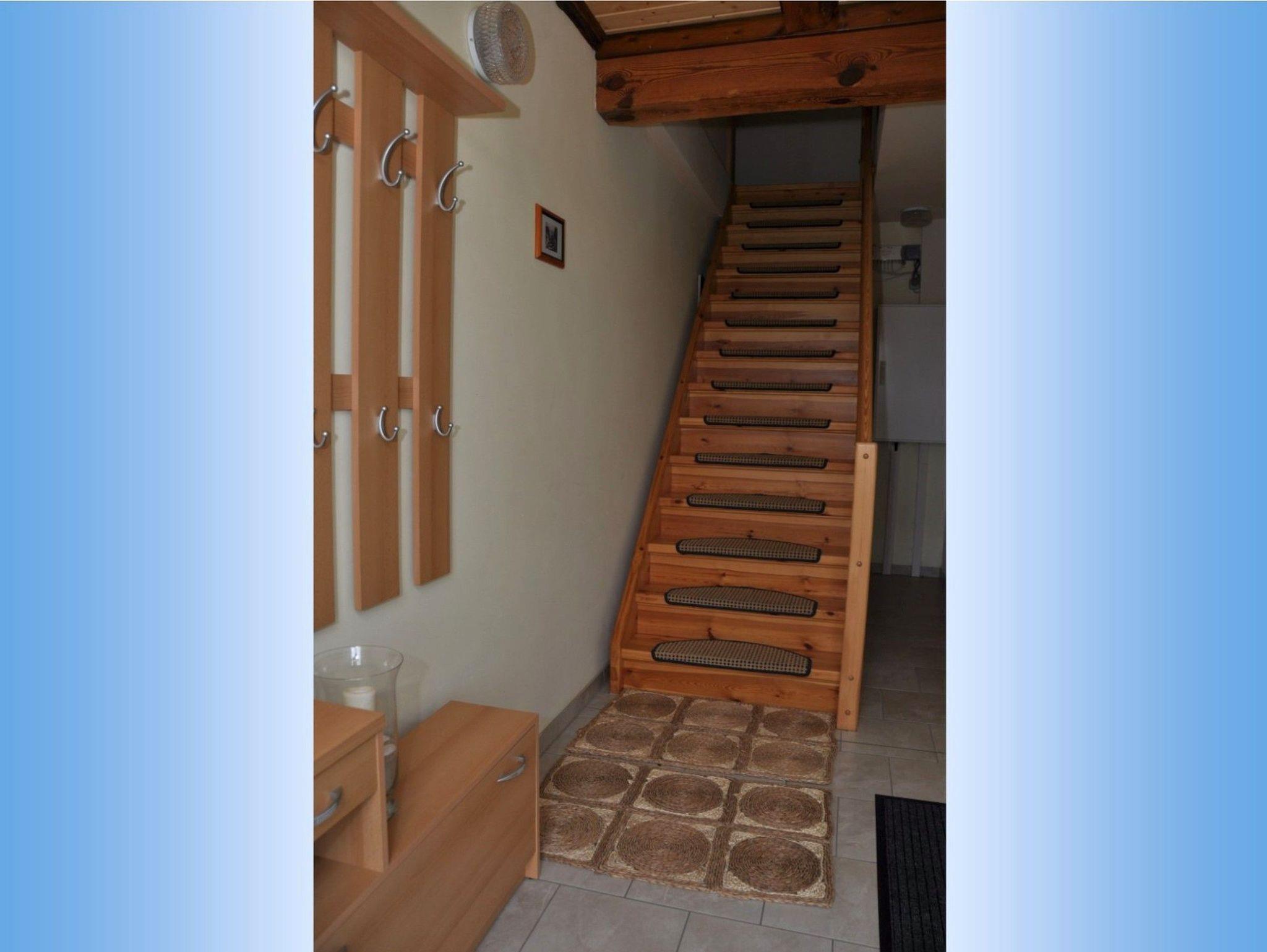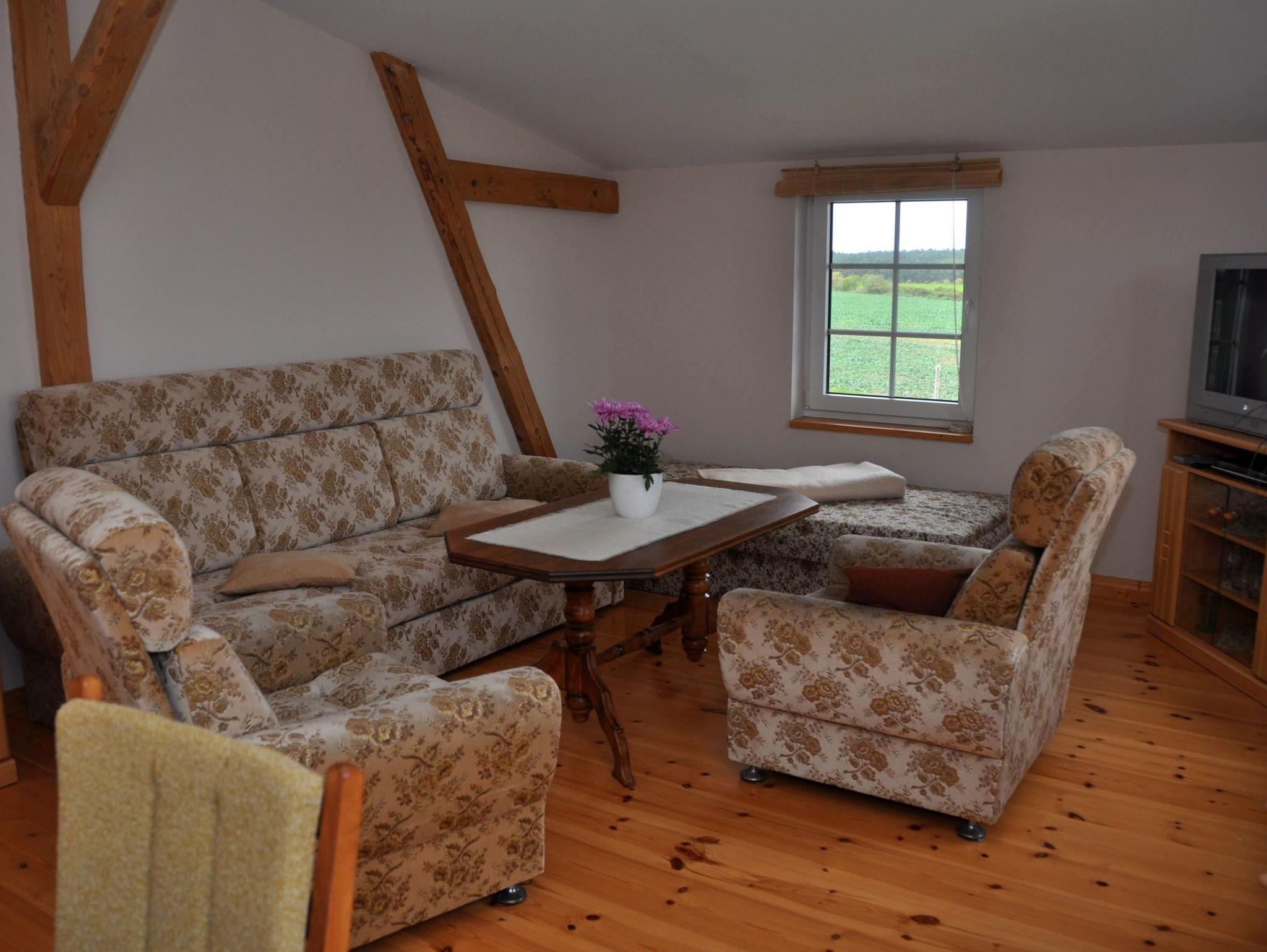 Die Wohnung im OG verfügt über ein separates Schlafzimmer mit Doppelbett, eine separate Küche sowie ein großes Wohnzimmer. In letzterem befindet sich eine Liege sowie eine Couch, die als Bett für 1 Personen umfunktioniert werden können.