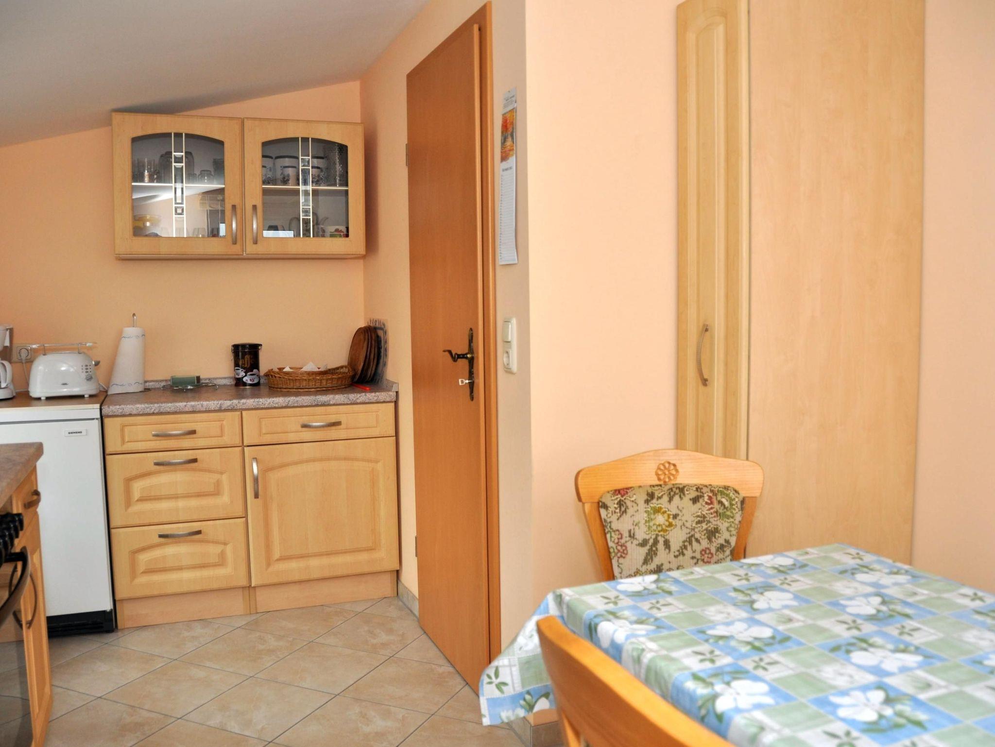 In der Küche finden Sie neben Besteck und Teller etc., eine Küchenzeile mit Kaffeemaschine, Toaster, Wasserkocher, Kühlschrank mit kleinem Frostfach. Im Wohnzimmer sind ein Fernseher sowie ein Radio vorhanden.