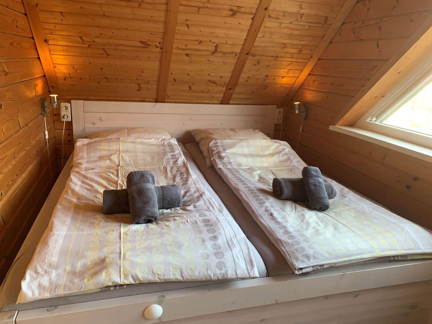 Der komplette Schlafbereich befindet sich im Obergeschoß. Das kleinere Schafzimmer verfügt über einetwas schmaleres Doppelbett, eine großen Kommode und einem Flachbildschirm. Das große Schlafzimmer ist mit einem großen Doppelbett, einem Kleiderschrank und einer Kommode ausgestattet. Auch hier gibt es natürlich einen Flachbildschirm.