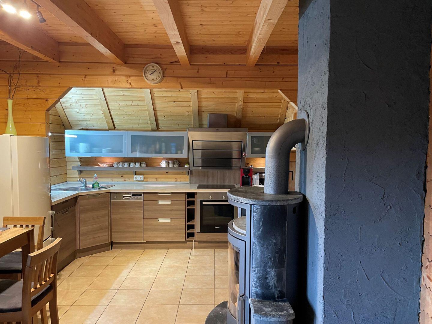Das Wohnzimmer im EG ist mit mit einer neuen Wohnlandschaft aus Dickleder mit vielen Funktionen eingerichtet. Dort können sie einen gemütlichen Fernsehabend auf dem großen Flachbildschirm genießen. Sie haben Zugang zum Sky Programm der Eigentümer mit großer Mediathek und über 300 Kinofilmen. Oder sie verwöhnen ihre Lieben mit einem heimeligen Abend vor dem brennenden Kamin. Der schöne Holzeßtisch mit Stühlen runden das Bild ab,