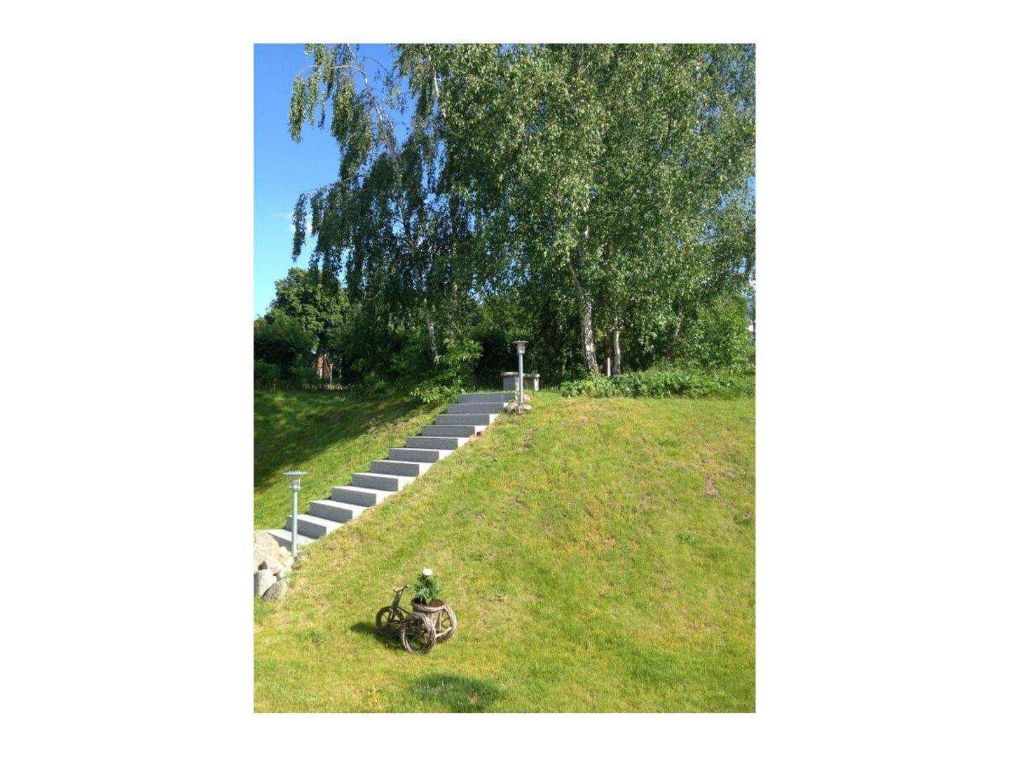 Zu dem Ferienhaus gehört ein 900qm großer Garten mit einer schönen Terrasse für erholsame Stunden. Zwei PKW - Stellplätze stehen am Haus zur Verfügung.