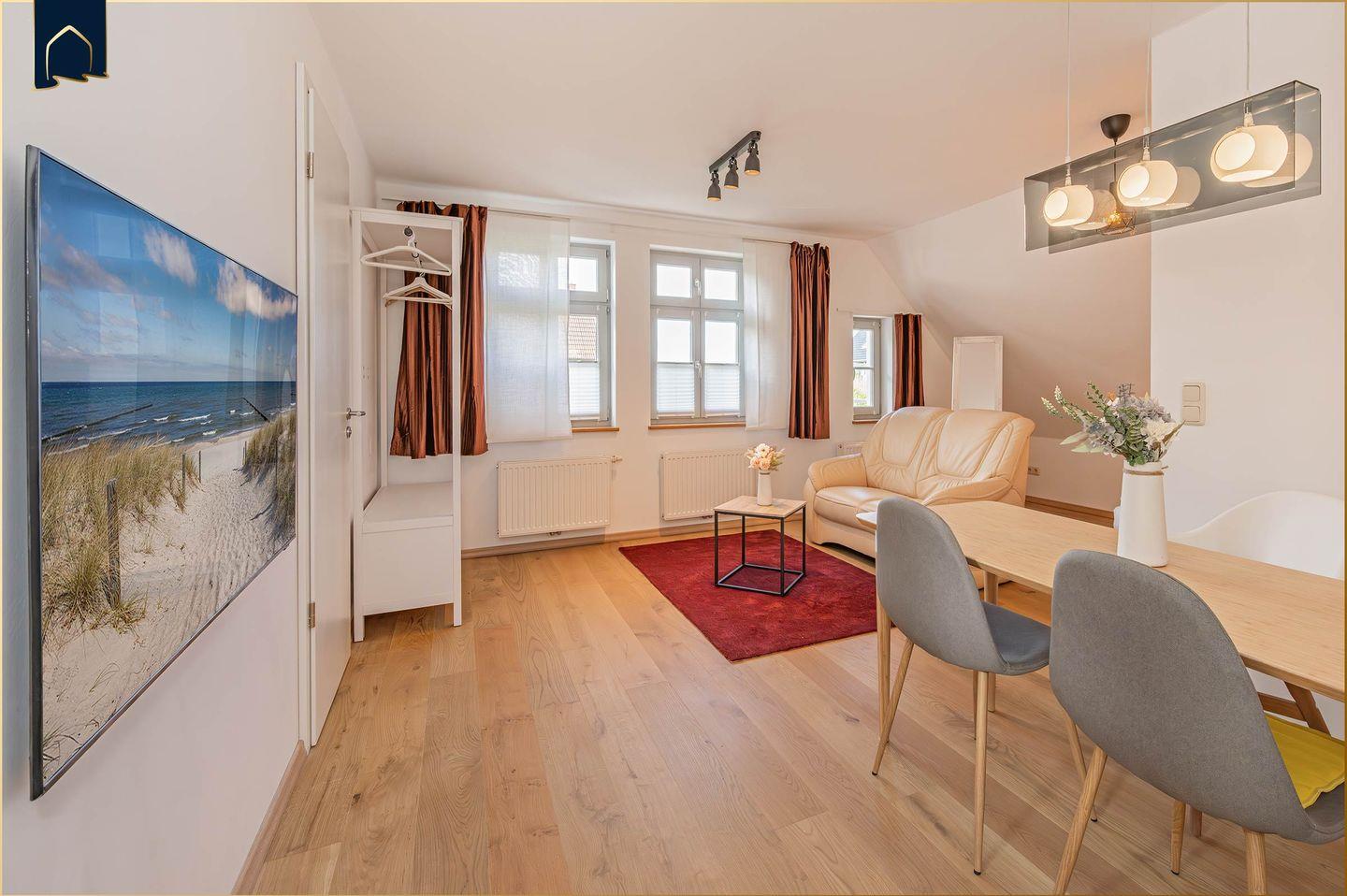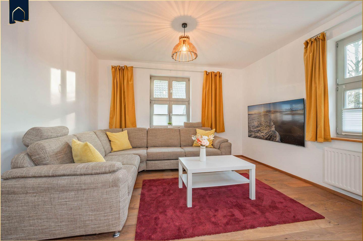 Das helle Wohnzimmer mit direktem Zugang zur Terrasse lädt zu entspannten Stunden mit Freunden oder Familie ein. Ob beim gemeinsamen Frühstück, Spieleabend oder beim Lesen in der Nachmittagssonne – hier finden alle ihren Lieblingsplatz. Der 600?m² große Garten ist ideal zum Toben, Sonnen oder einfach zum Durchatmen. Drei private Stellplätze auf dem Grundstück bieten Komfort vom ersten Urlaubstag an. Auch wenn das WLAN aktuell nicht für intensives Arbeiten oder Streaming geeignet ist, reicht es für grundlegende Anwendungen – ideal für eine entspannte digitale Auszeit.