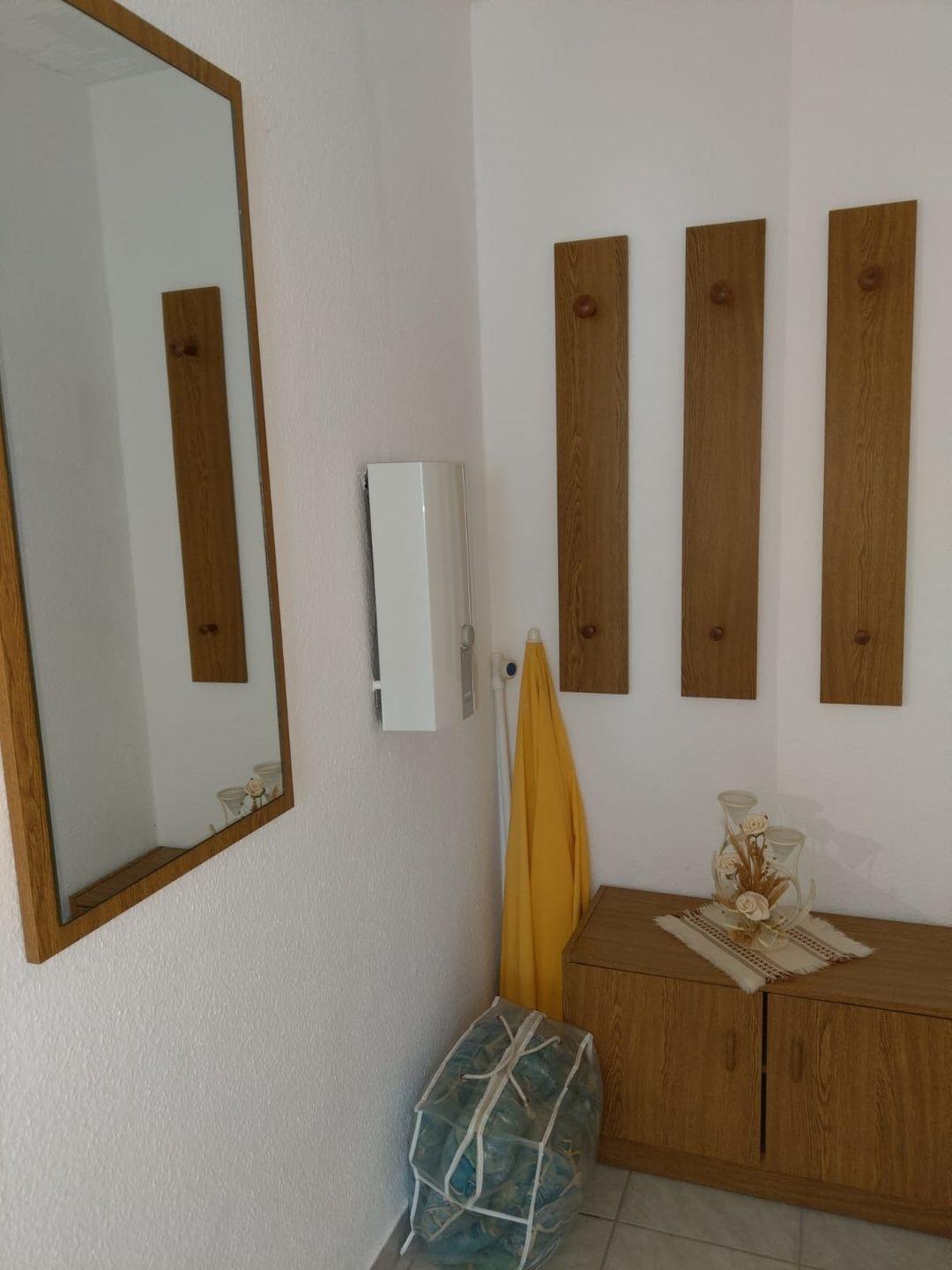 Über den Flur mit Flurgarderobe betreten Sie das Ferienhaus. Hier ist auch das Bad mit Dusche und WC. Im Wohn- und Esszimmer stehen Küchenschränke und ein Modul mit zwei Kochplatten, eine Kaffeemaschine, ein Toaster, ein Wasserkocher, ein Kühlschrank mit Gefrierfach, eine Spüle und ein Radio. Des Weiteren befinden sich hier ein Esstisch, eine Couch, zwei Sessel, der Fernseher und ein Doppelbett. Im Schlafzimmer stehen ein weiteres Doppelbett und ein Kleiderschrank. Zur Ferienwohnung gehört eine eigene Südterrasse mit Gartenmöbeln, Sonnenschirm und Grill. Wenn Sie möchten können Sie auch gern die große überdachte Terrasse mit Grill nutzen. PKW Stellplätze sind auf dem Grundstück vorhanden.