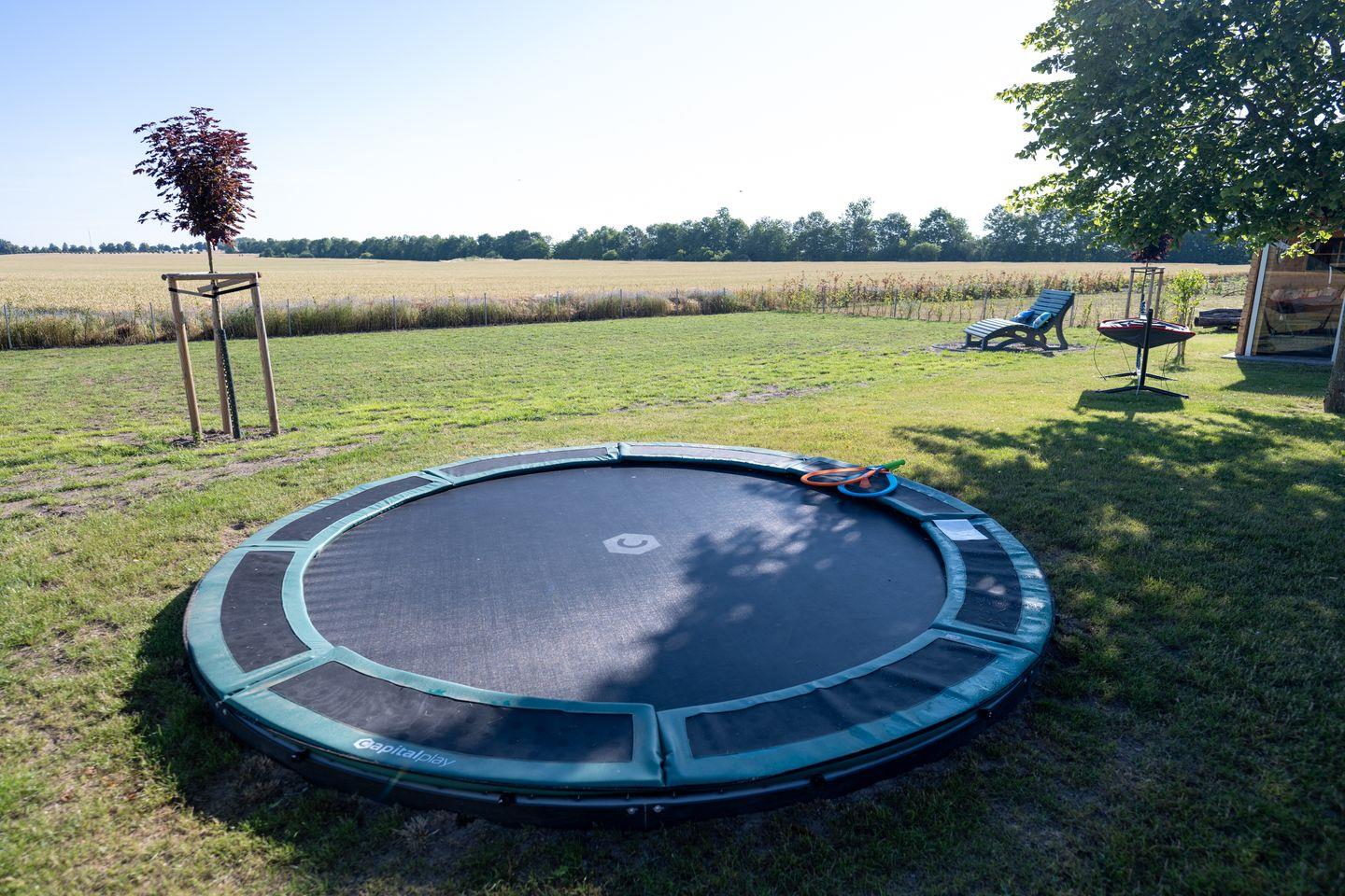 Der große Garten ist ein Paradies für Kinder: mit Spielburg, Trampolin und viel Platz zum Toben. Für die Eltern stehen zwei PKW-Stellplätze, eine abschließbare Fahrradgarage und eine Wallbox bereit – ideal für alle, die mit dem E-Auto anreisen.