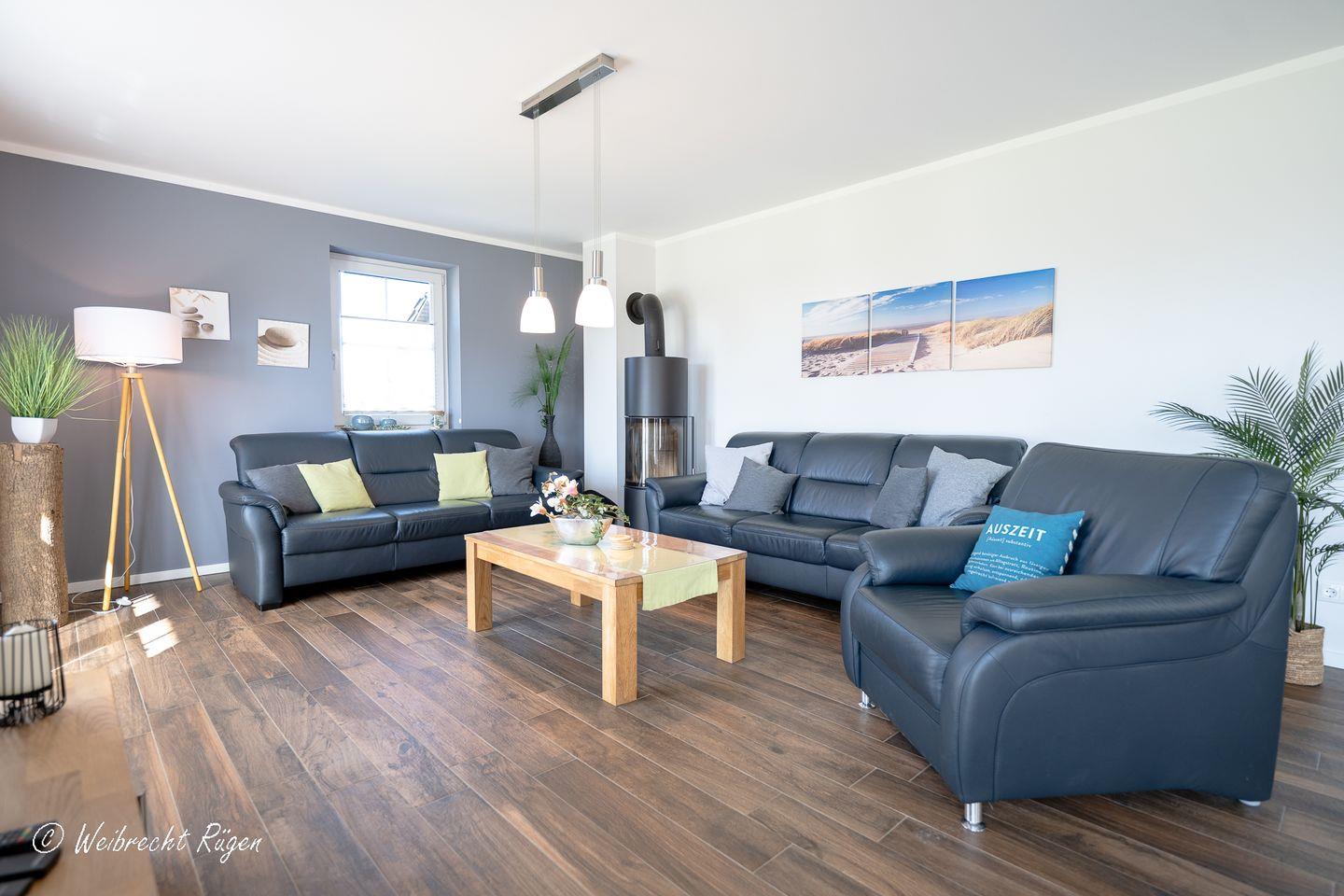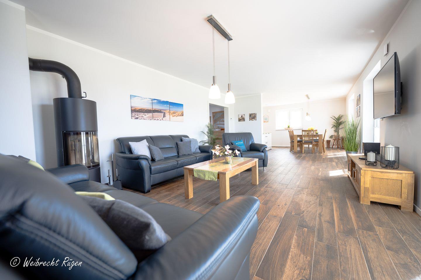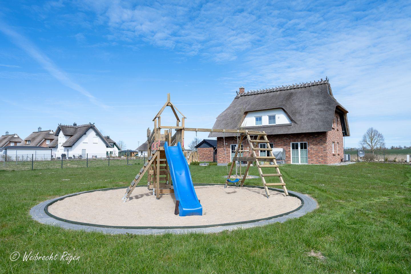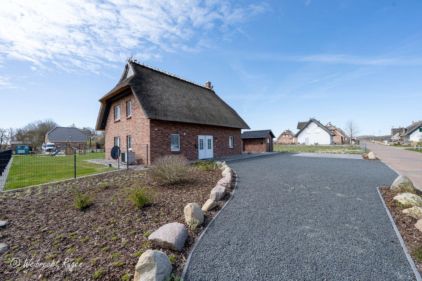 Großzügiges Reetdachhaus mit Kamin, Sauna und großem Garten in Südrügen für erholsame Urlaubstage.