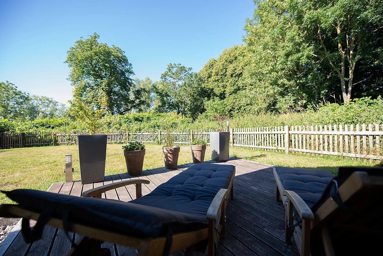 Entspannte Urlaubsstunden verbringen Sie hübschen, im eingezäunten Garten mit gemütlicher Südterrasse. Bis zu 2 Hunde dürfen hier den Urlaub mit Ihnen genießen.