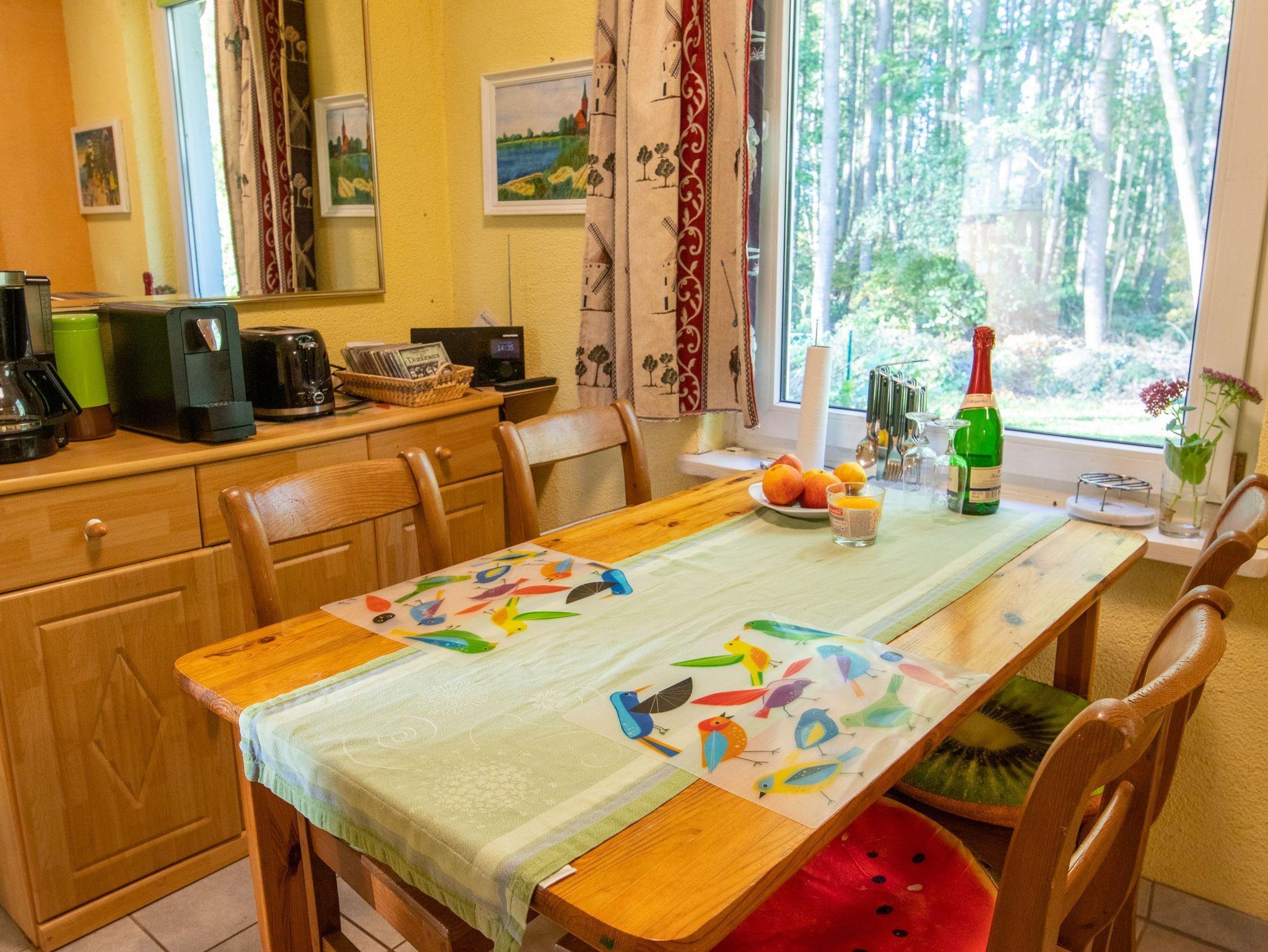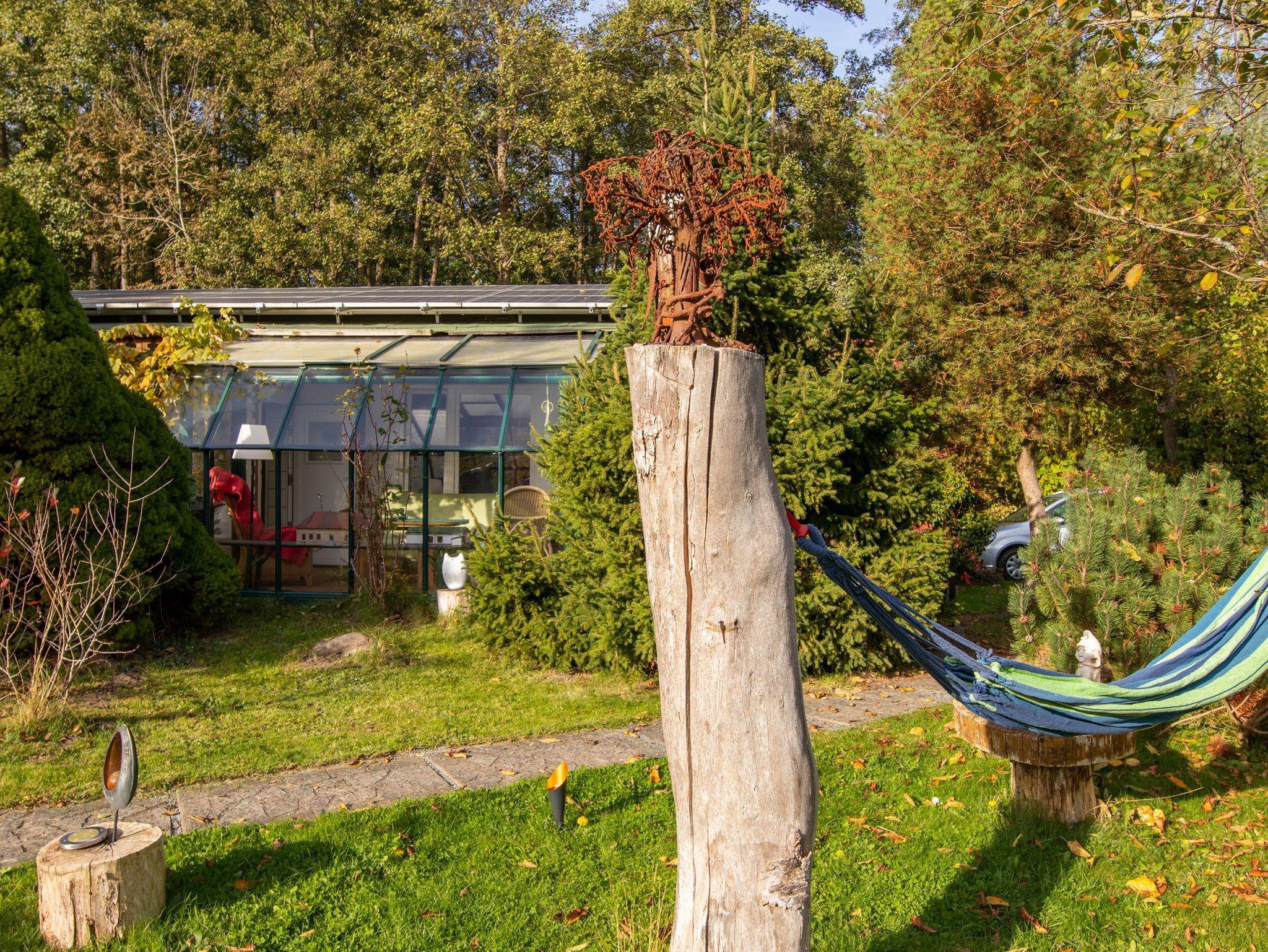 Gemütlicher Bungalow in Gristow mit Wintergarten, Kamin und großem Garten für entspannte Ferien inmitten der Natur.