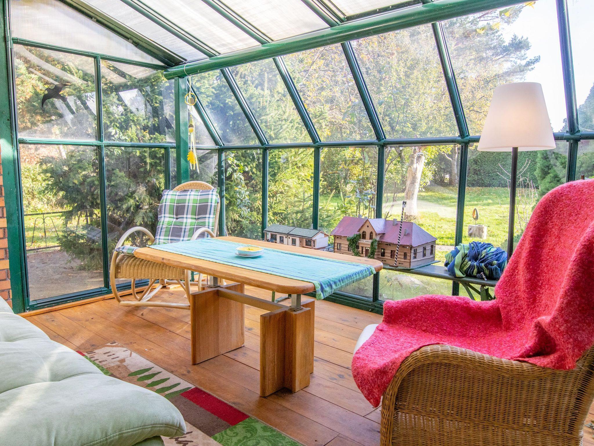 Gemütlicher Bungalow Strehl mit Garten, Kamin und Wintergarten am Waldrand in Gristow.