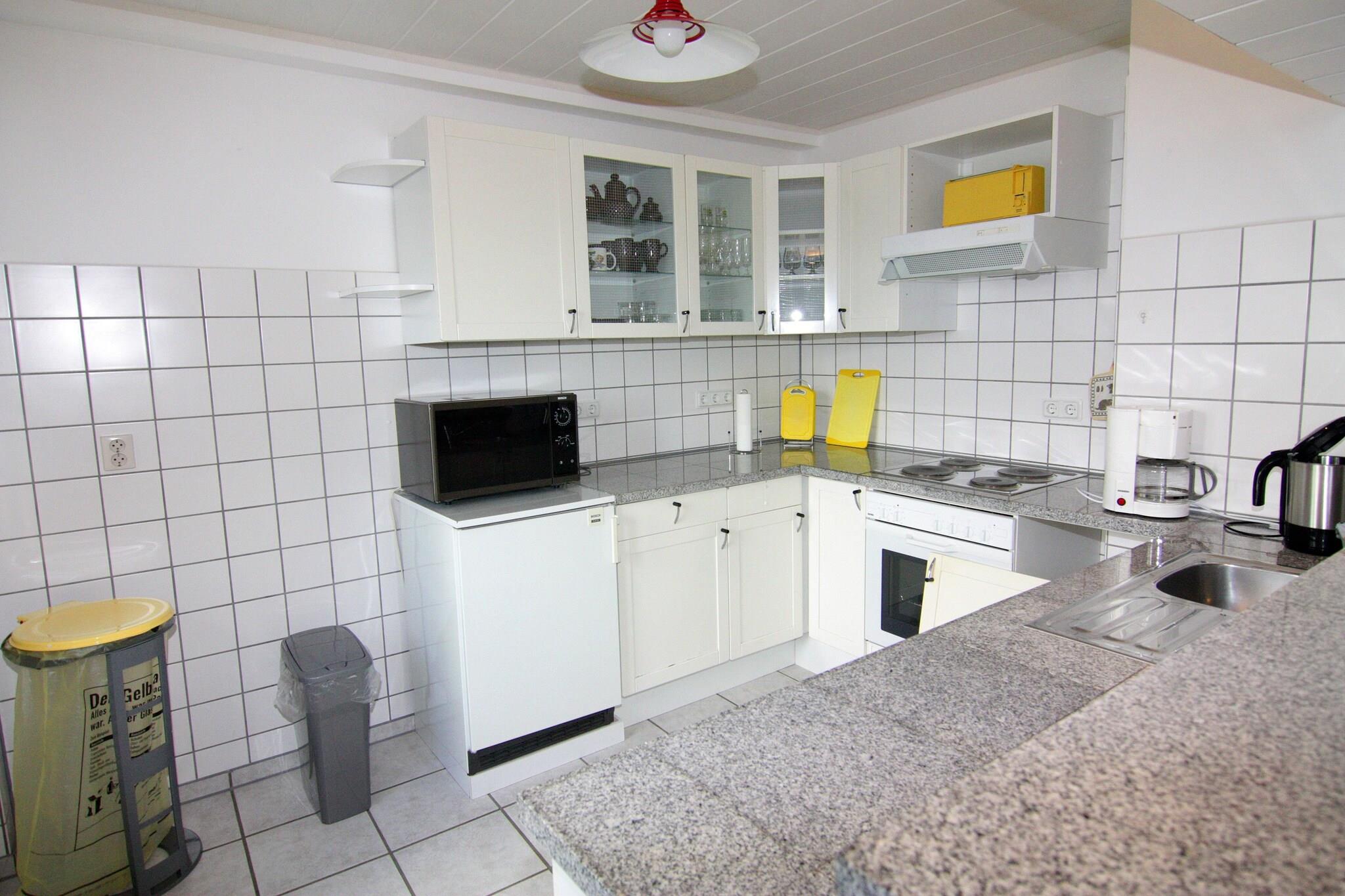 In der 1. Etage: (offene Küche(Esstisch(4 Personen), Kochplatte(4 Kochplatten, elektrisch), Toaster, Dunstabzugshaube, Kaffeemaschine, Backofen, Mikrowelle, Spülmaschine, Kühl-/Gefrierkombination), Wohn/Esszimmer(Einzelklappbett , TV(Satellit), Radio, CD-Spieler), Schlafzimmer(Doppelbett), Schlafzimmer(Einzelbett), Badezimmer(Badewanne, 2x Waschbecken, Toilette)) Heizung, Garten(Gemeinschaftliche Nutzung mit anderen Gästen), Gartenmöbel, Grill(Gemeinschaftliche Nutzung mit anderen Gästen), Parkplatz, Hochstuhl, Babybett (kostenpflichtig), Handtücher/Bettwäsche (extra Gebühr)
