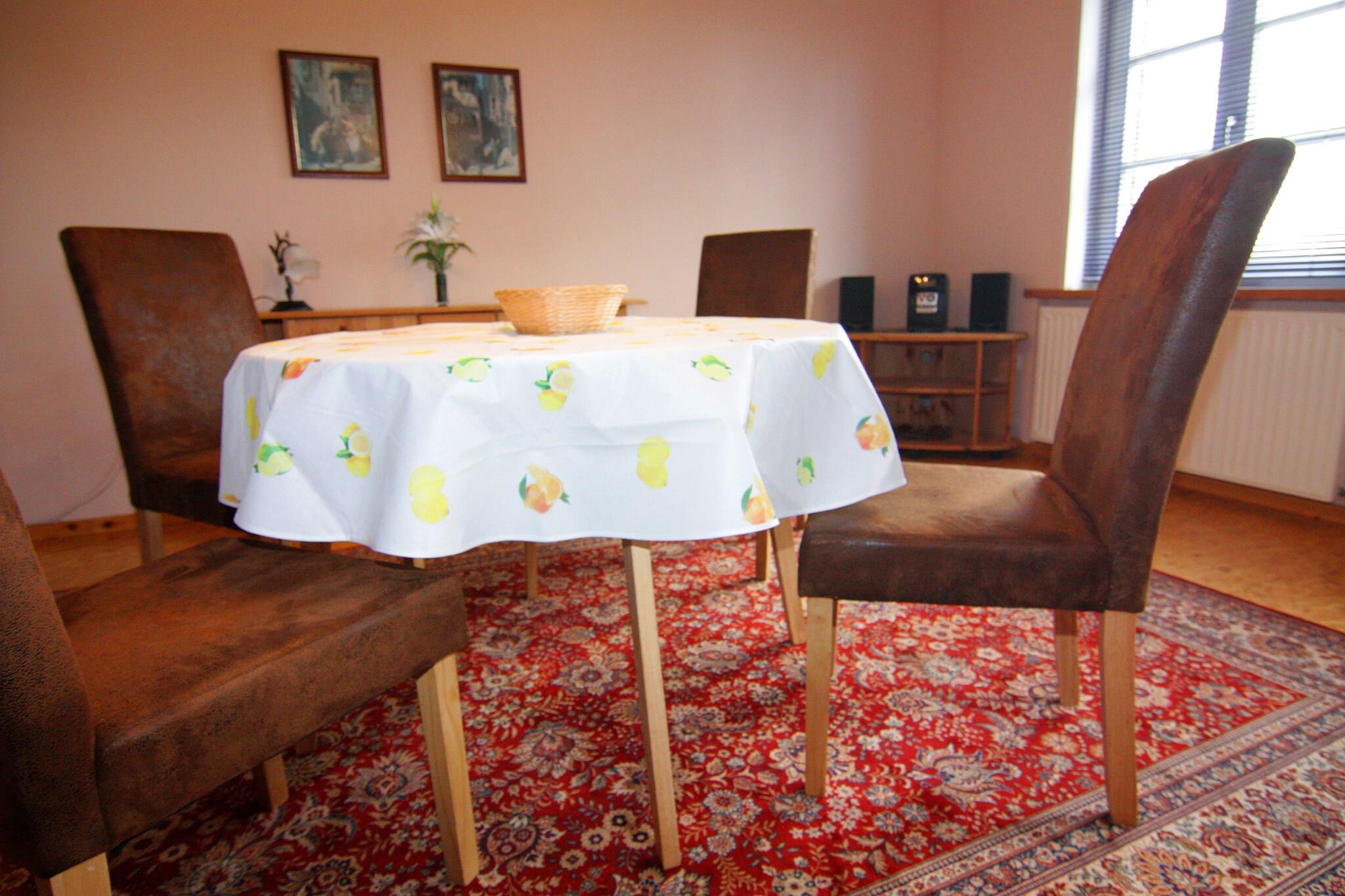 In der 1. Etage: (offene Küche(Esstisch(4 Personen), Kochplatte(4 Kochplatten, elektrisch), Toaster, Dunstabzugshaube, Kaffeemaschine, Backofen, Mikrowelle, Spülmaschine, Kühl-/Gefrierkombination), Wohn/Esszimmer(Einzelklappbett , TV(Satellit), Radio, CD-Spieler), Schlafzimmer(Doppelbett), Schlafzimmer(Einzelbett), Badezimmer(Badewanne, 2x Waschbecken, Toilette)) Heizung, Garten(Gemeinschaftliche Nutzung mit anderen Gästen), Gartenmöbel, Grill(Gemeinschaftliche Nutzung mit anderen Gästen), Parkplatz, Hochstuhl, Babybett (kostenpflichtig), Handtücher/Bettwäsche (extra Gebühr)