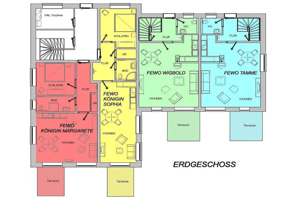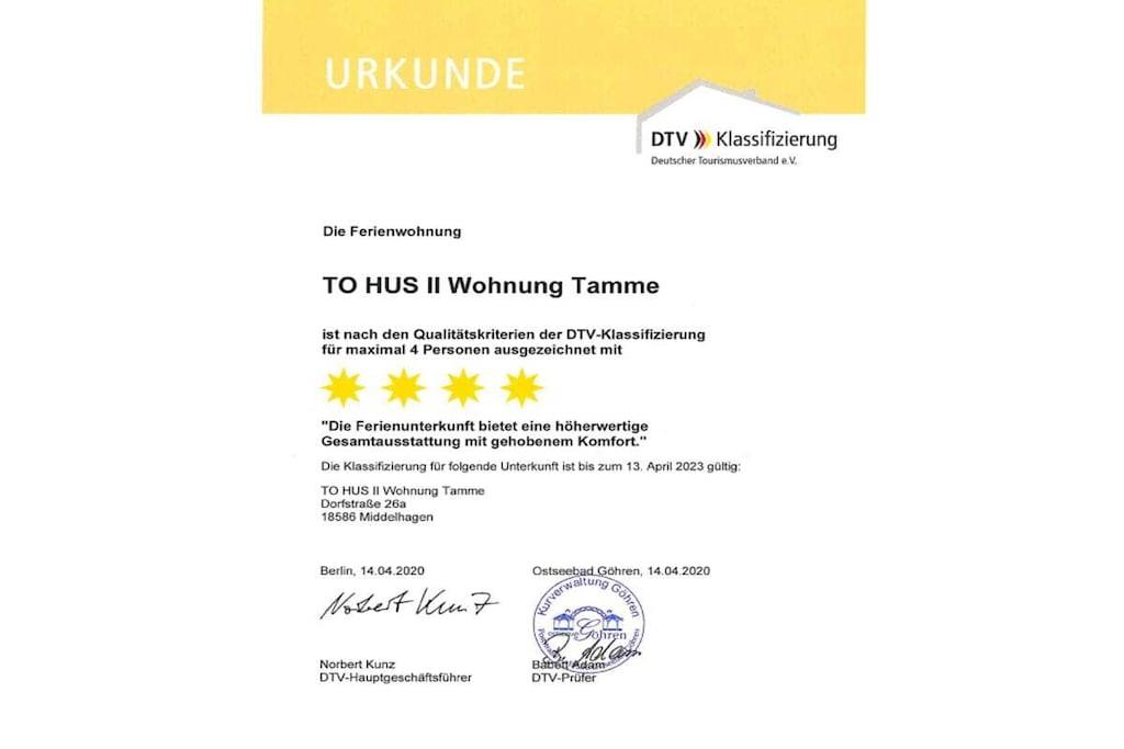 Willkommen in unserer komfortablen 2-Etagen-Ferienwohnung Tamme. Die gehobene Ausstattung ist auf max. 6 Personen (4 Erw.+ 2 Kleinkinder) abgestimmt. Der großzügige Wohnbereich im Erdgeschoss mit vielen Fenstern und Kamin lädt zum Verweilen ein. Lassen Sie sich von dem wundervollen Blick auf die idyllische Boddenlandschaft verzaubern. Direkt an das Wohnzimmer grenzt die Gartenterrasse mit bequemer Sitzgruppe. Die hochwertige Küche befindet sich ebenfalls im Erdgeschoss und bietet viel Platz zum Essen oder für einen geselligen Spielabend. Zur Ferienwohnung gehören weiterhin 2 getrennte Schlafzimmer im Dachgeschoss. Neben dem modernen Duschbad im Dachgeschoss gibt es ein Gäste-WC im Erdgeschoss.