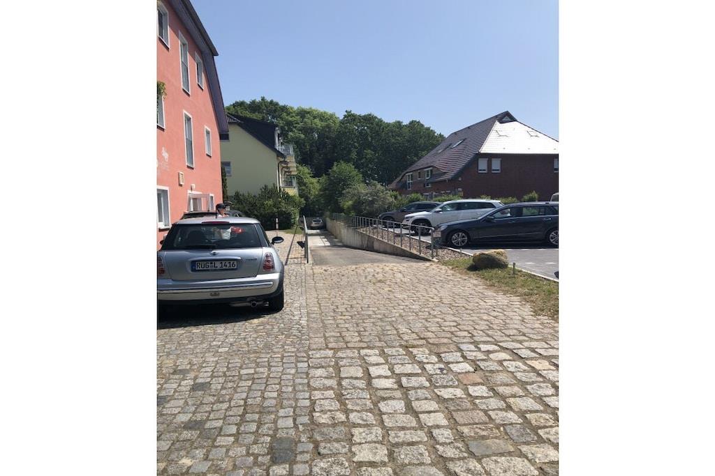 Gemütliche Ferienwohnung mit direktem Strandzugang in Lobbe, ideal für bis zu 3 Personen mit WLAN, zwei Balkonen und Parkplatz.
