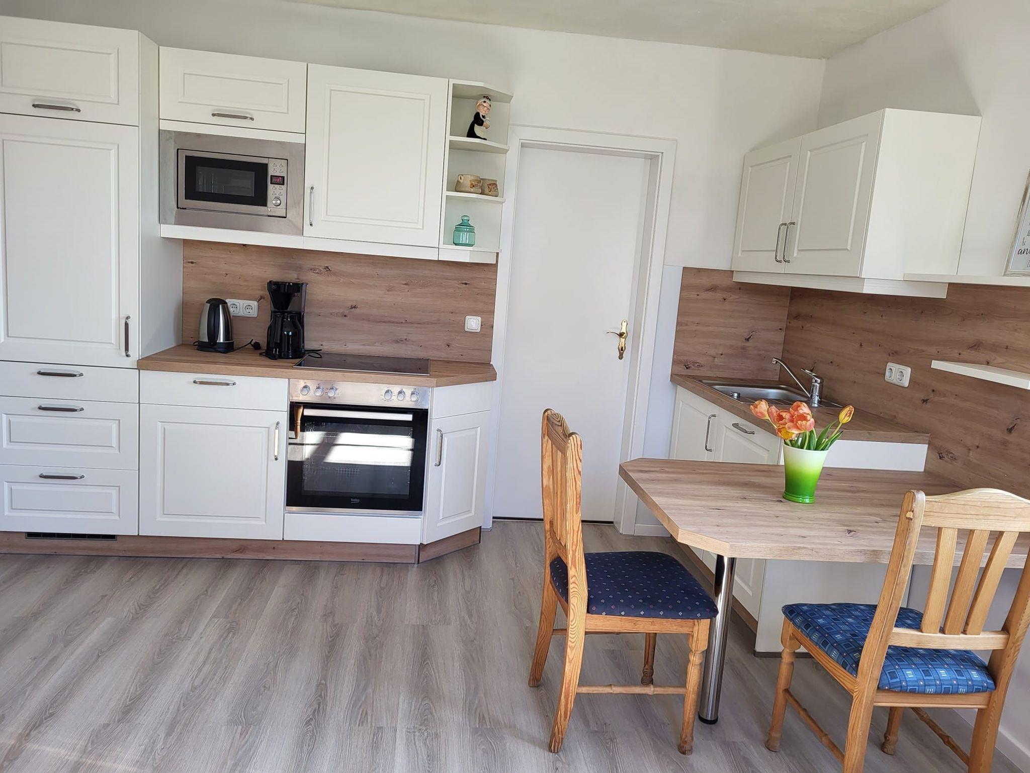 Die Ferienwohnung hat eine eigene Terrasse mit einem herrlichen Seeblick. Auf 45 qm Fläche, mit einem separaten Schlafzimmer, ein Wohnzimmer mit einer ausziehbaren Schlafcouch, TV und mit einer voll ausgestatteten Einbauküche sowie Badezimmer mit Dusche/WC bietet die Wohnung eine optimale Wohnqualität.