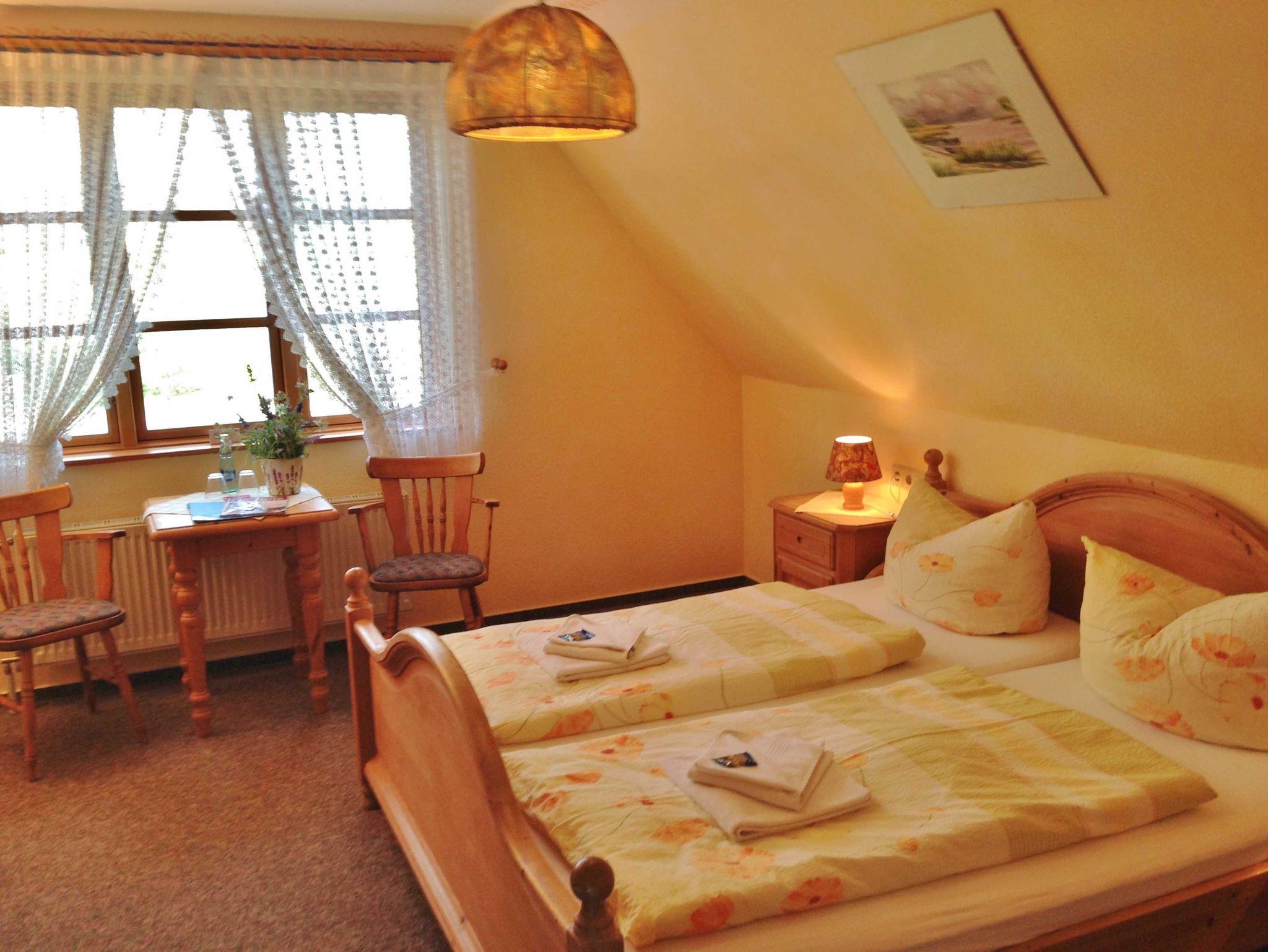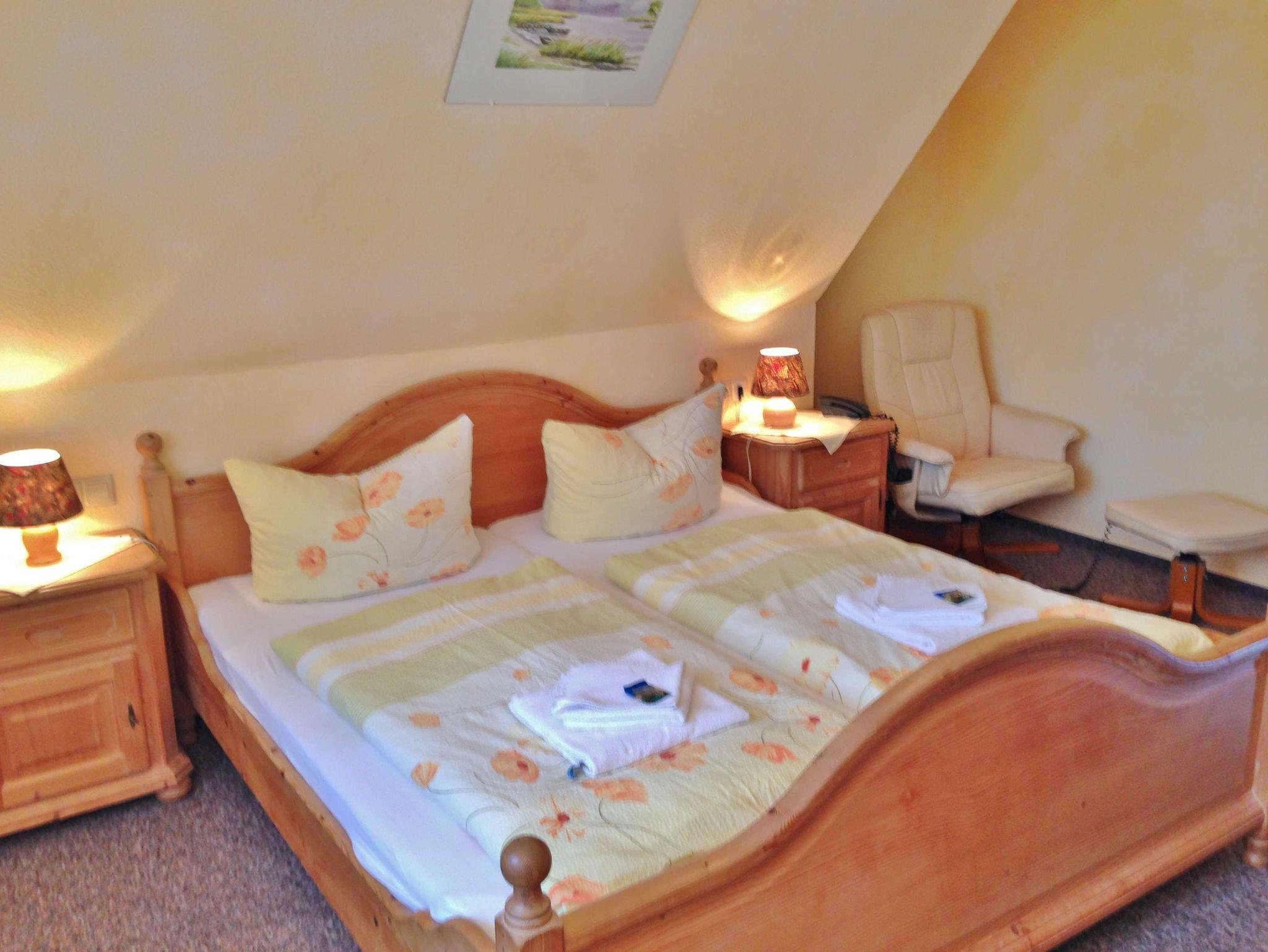 In dem reetgedeckten Haus gibt es 12 Zimmer für zwei bzw. drei Personen auf insgesamt 3 Etagen. In der Pension ist auch die Anmeldung für alle unsere Gäste untergebracht.