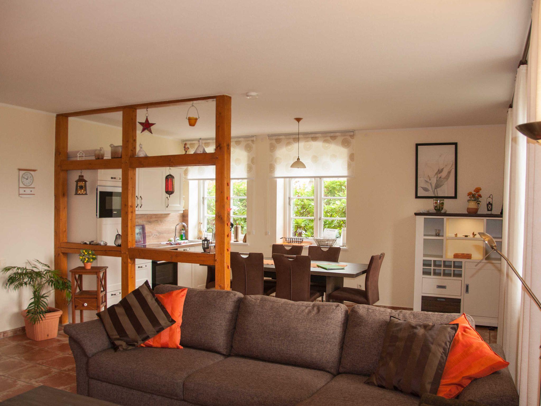 Alle Wohnungen und Appartements verfügen über im Jahr 2015 komplett erneuerte Küchenzeilen mit hochwertigen Einbaugeräten von Miele. Das durchdachte Farbkonzept mit warmen Farben und aufeinander abgestimmten Möbeln verleiht den Wohnungen ihren besonderen Charme. Die geschmackvolle Möblierung im modernen Landhausstil bietet Ihnen allen Komfort, den Sie sich im Urlaub wünschen. Alle Wohnungen sind mit Fußbodenheizung ausgestattet, damit es auch in der kälteren Jahreszeit schön kuschelig ist, zudem sorgen in einigen Wohnungen Kamine für eine romantische Stimmung, wenn draußen der Wind pfeift. Die Erdgeschosswohnungen verfügen über Sonnenterrassen mit direktem Zugang zum Garten und den Gästen aus den anderen Wohnungen stehen im Garten Sitzmöglichkeiten zur Verfügung.