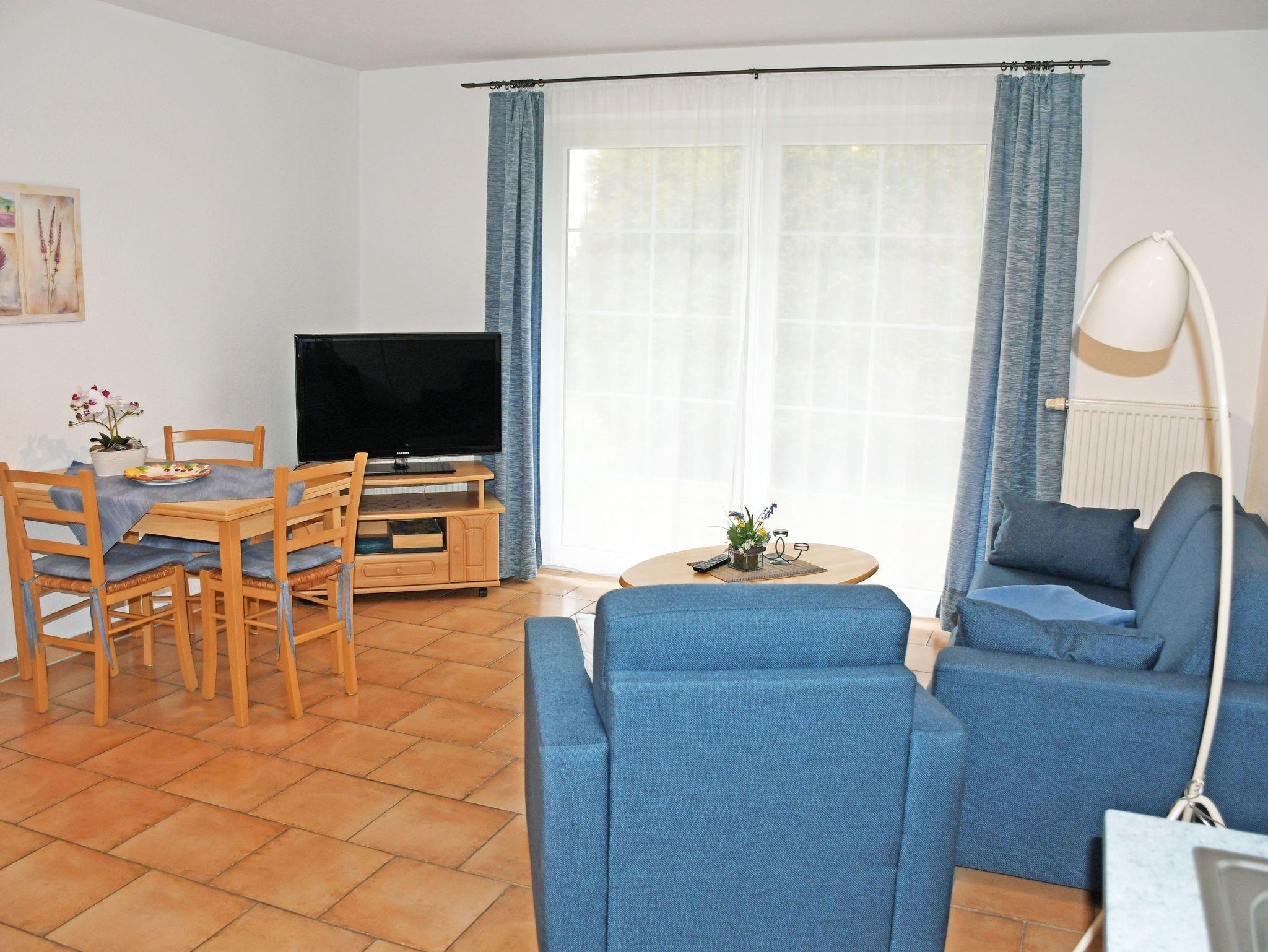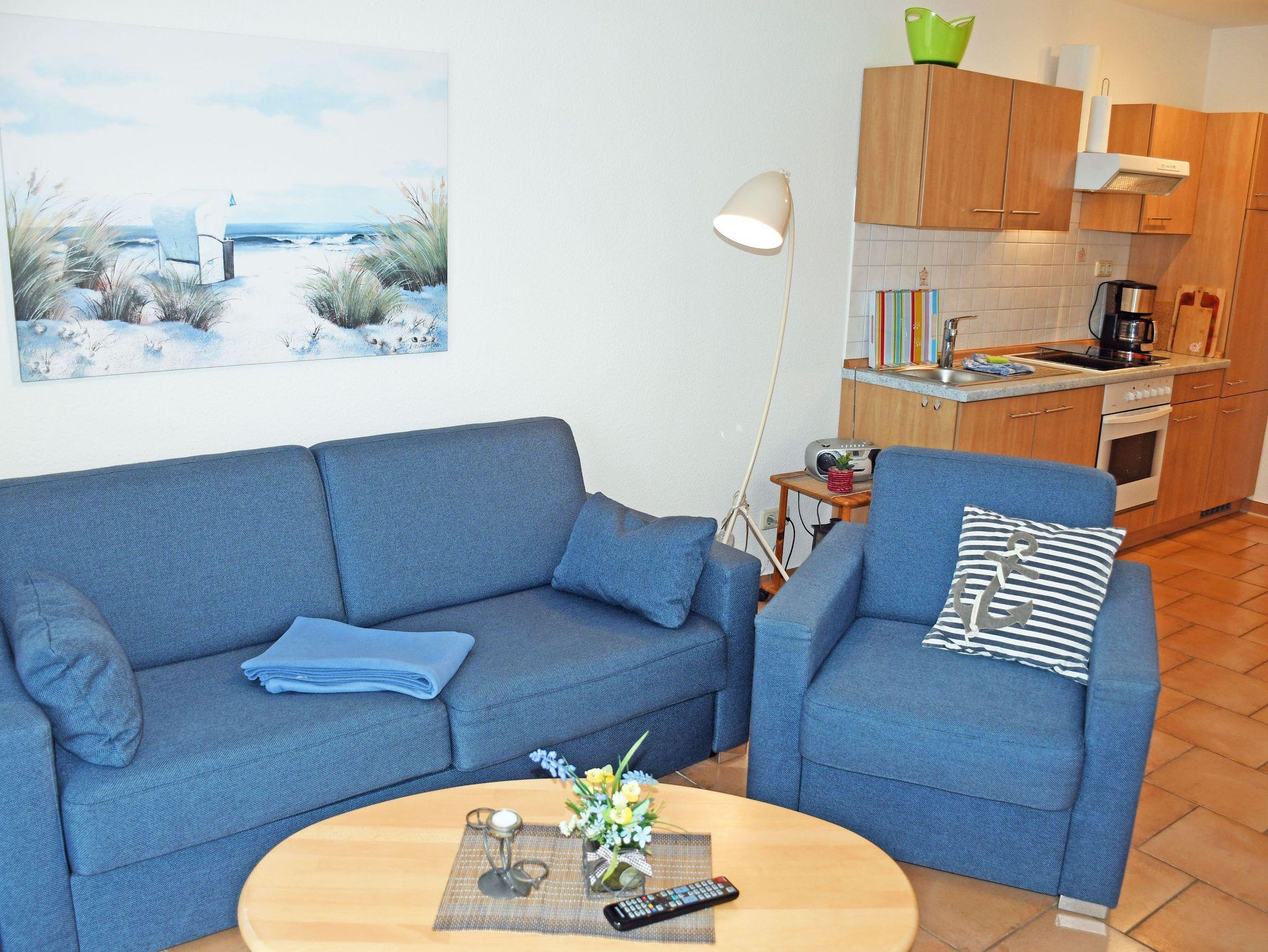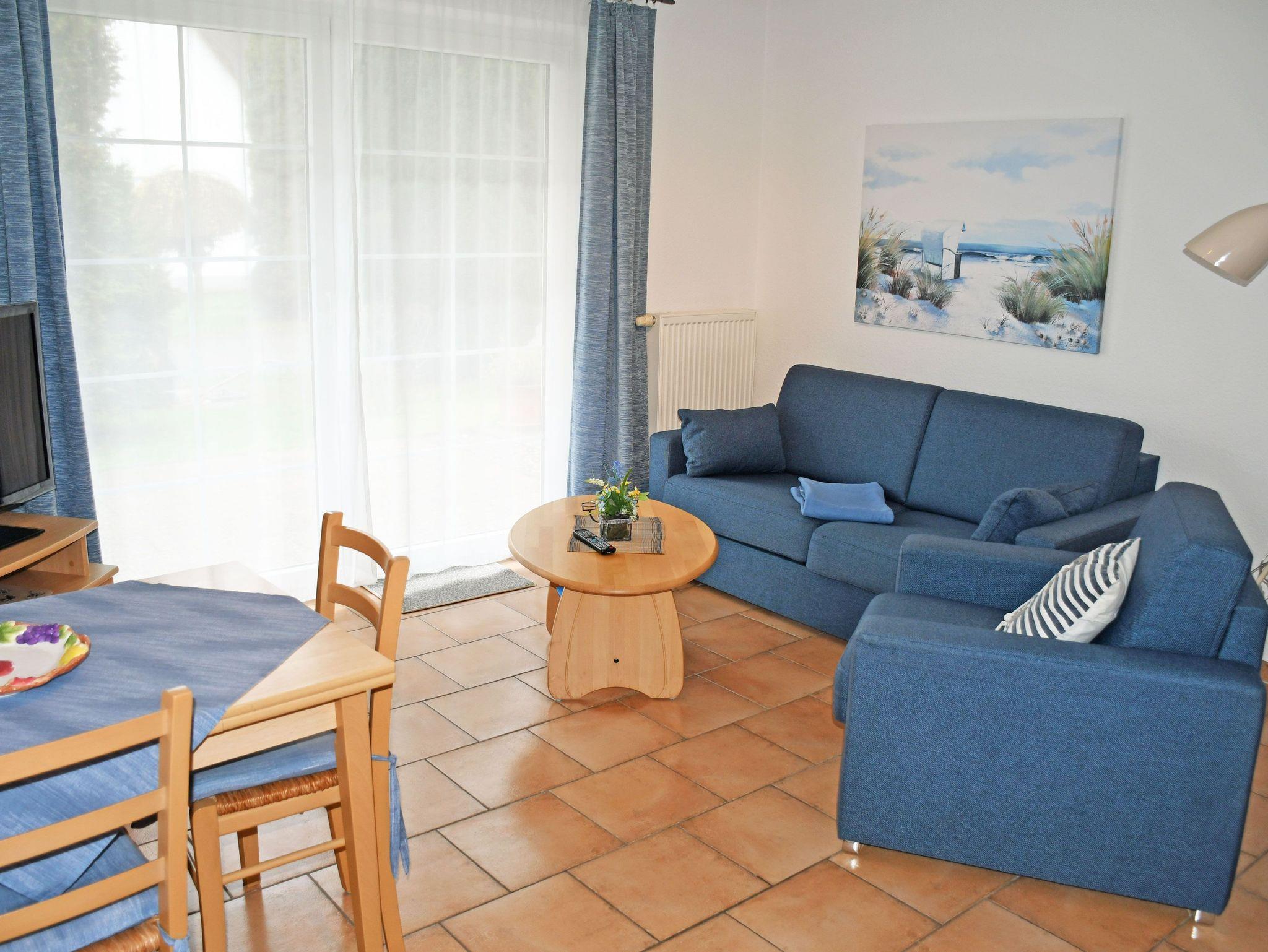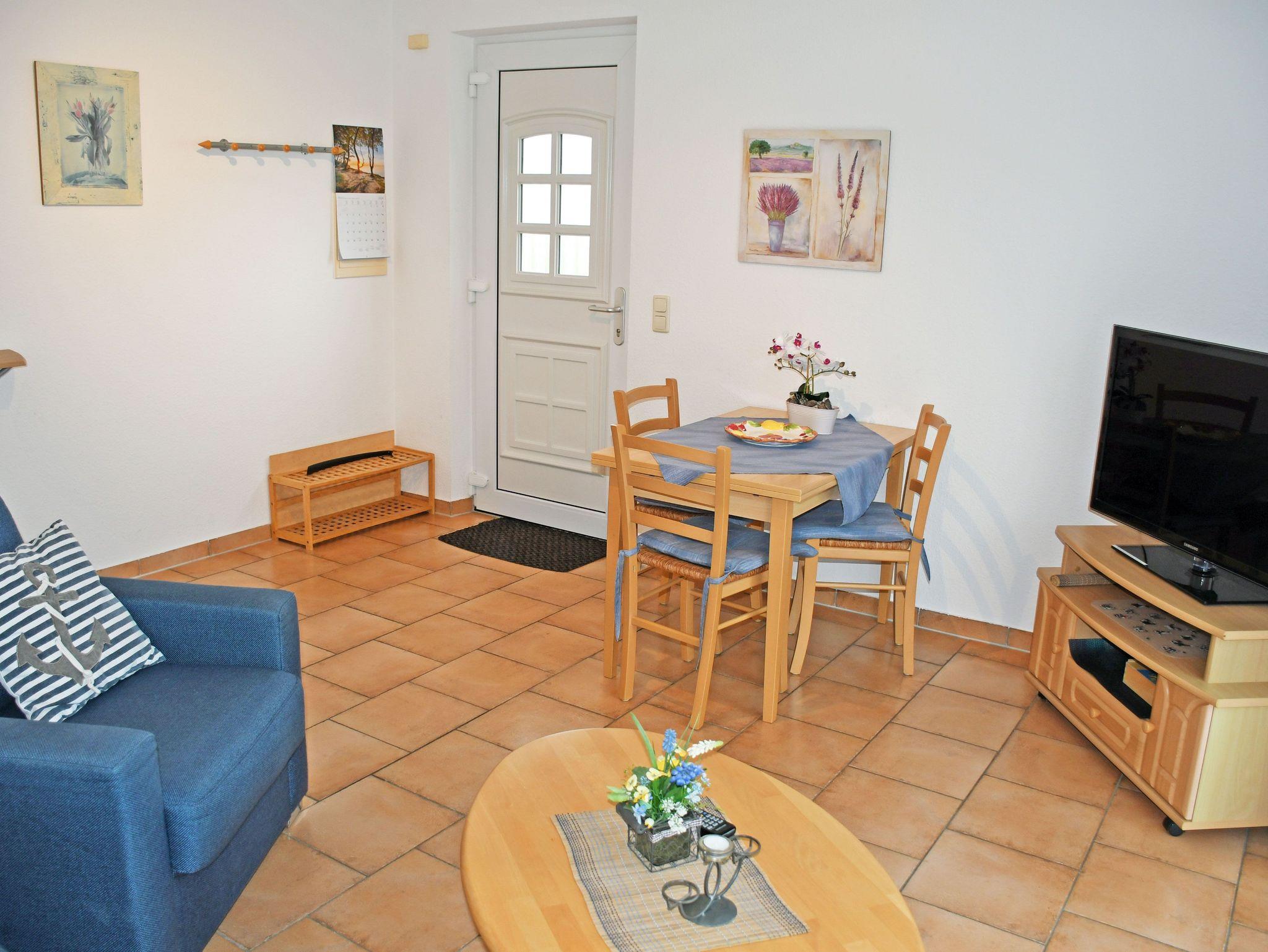Die Ferienwohnungen Vilm und Ruden liegen im Erdgeschoss des Appartementhauses und verfügen über einen separaten Eingang. Sie sind ca. 35 qm groß, haben Platz für maximal 2 Erwachsene und ein Kind bis 3 Jahre im Kinderreisebett. Sie wurden modern sowie liebevoll eingerichtet und bietet ein WLAN-Internetzugang. Im Wohnraum befinden sich eine bequeme Sitzcouch mit Tisch und ein modernes Flachbild-TV-Gerät und Radio. Hier steht auch ein Esstisch mit Stühlen.