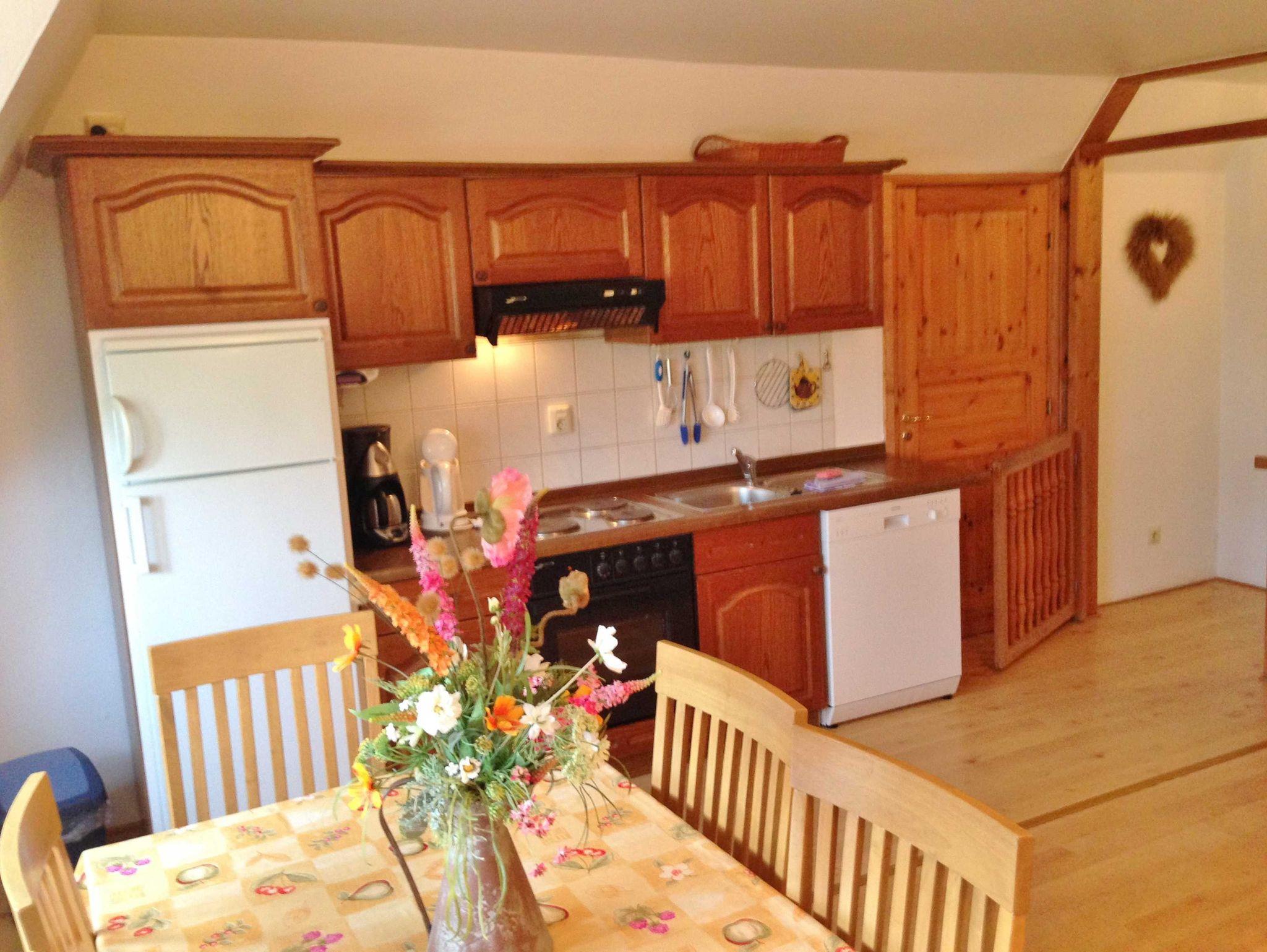 Im reetgedeckten Ferienhaus ,,Rohrdachhus befindet sich in der 1. Etage ihre schöne Ferienwohnung, auf ca. 75qm Fläche, über 2 Ebenen verteilt. Die Wohnung ist komfortabel ausgestattet mit 2 separaten Schlafzimmern, Wohnzimmer, TV und mit voll ausgestatteter Einbauküche, ein Badezimmer mit Dusche/WC und Föhn.